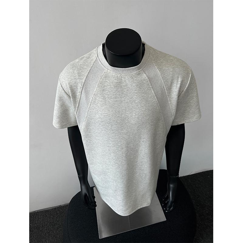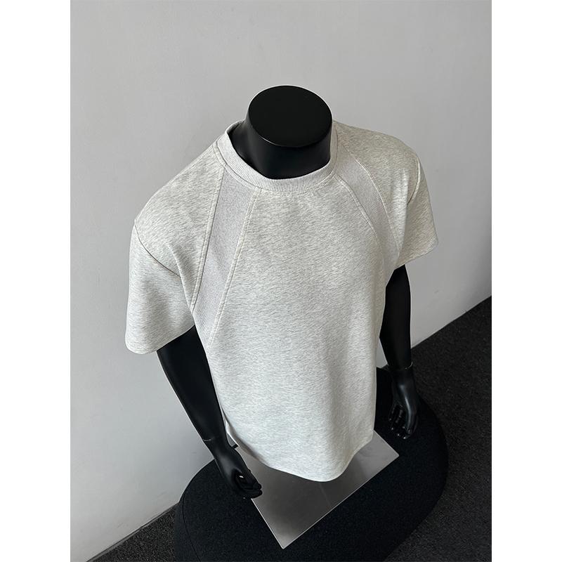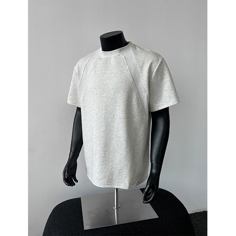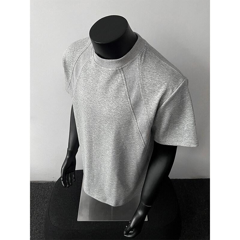 【正肩结构设计,潮牌版型】美式重磅正肩结构潮牌短袖男t恤boxy版型圆领空气层拼接短袖t恤.TA