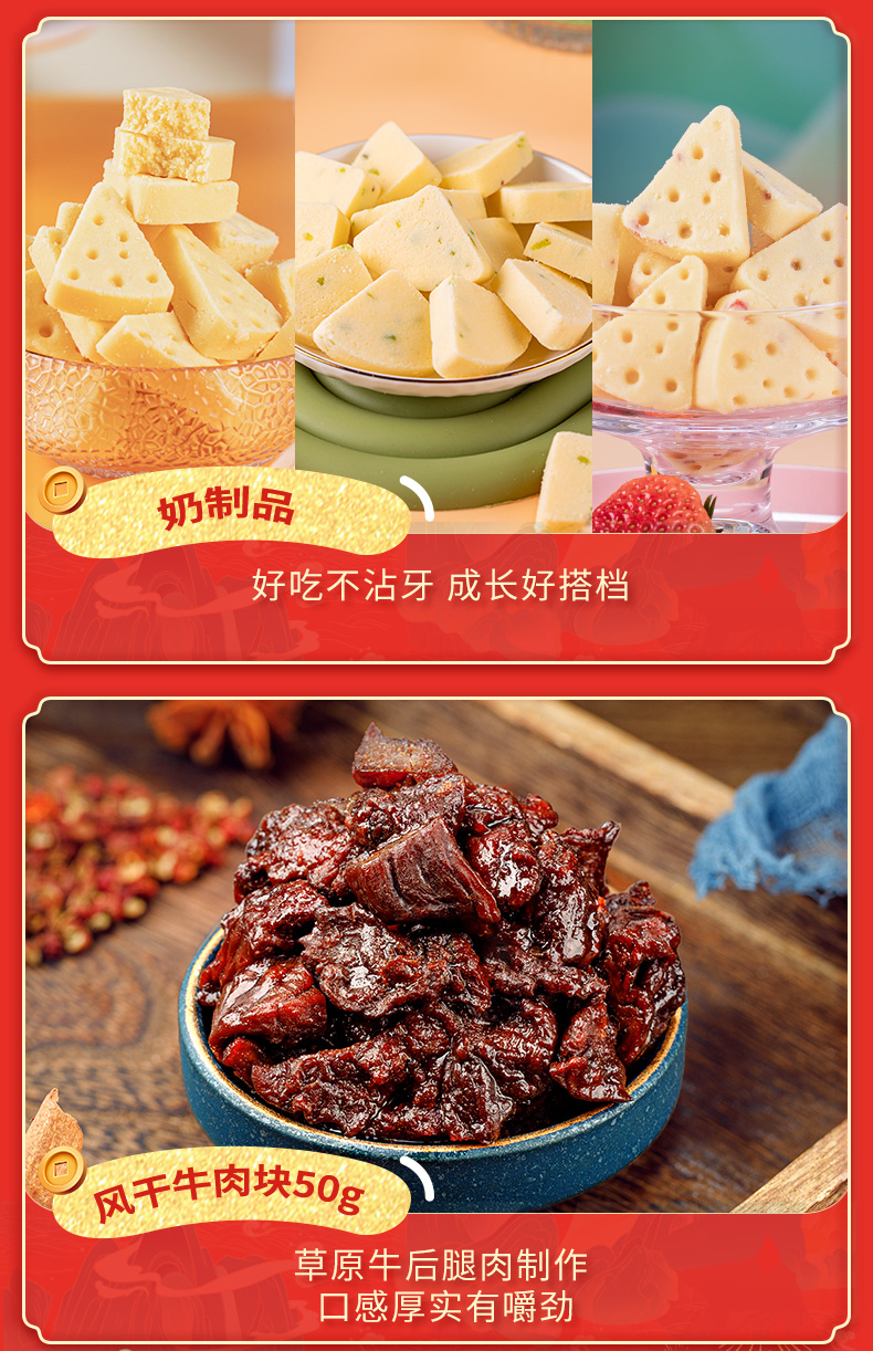 内蒙古 蒙都牛肉干 奶条 奶贝 乳酪 牛筋 1050g组合