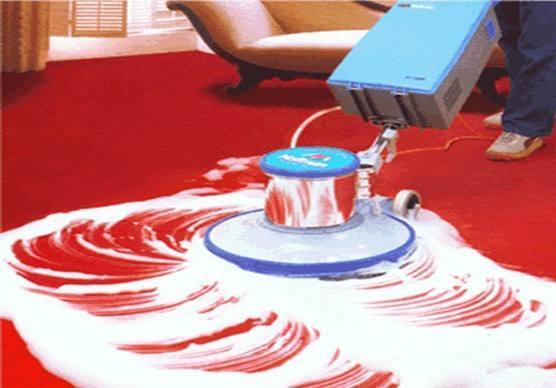 5、用装有打泡器、地毯刷的单盘扫地机以干泡刷洗的方式清洗地毯,