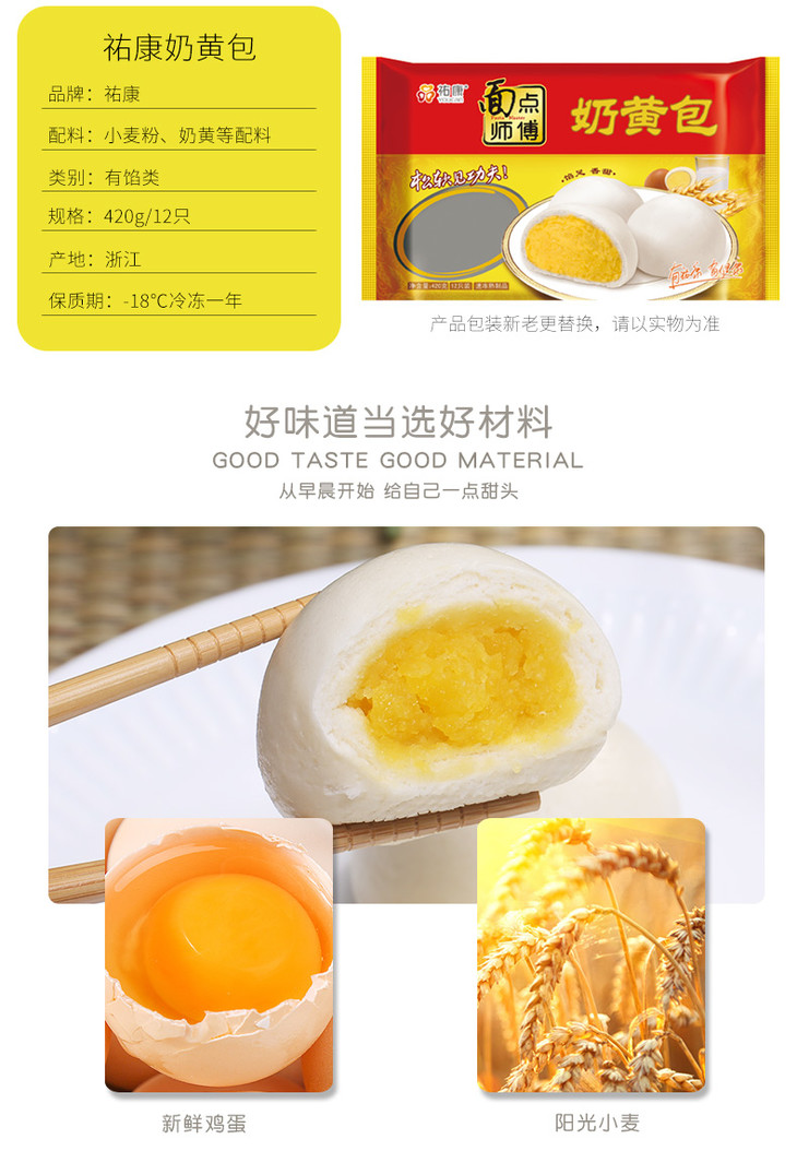 【包邮套餐】祐康面点师傅420g奶黄包*3包