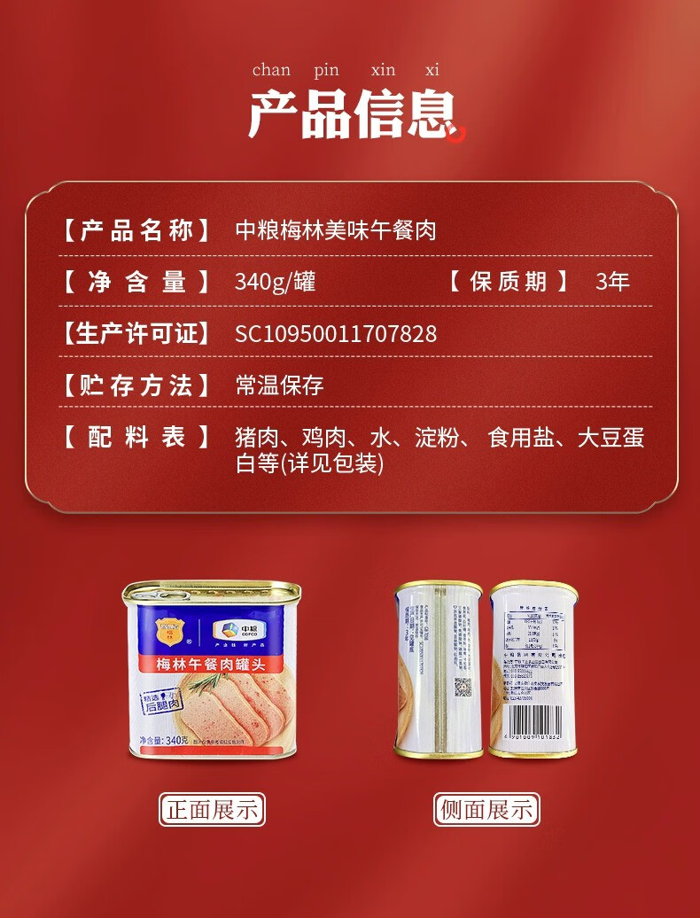 梅林牌美味午餐肉罐头340g