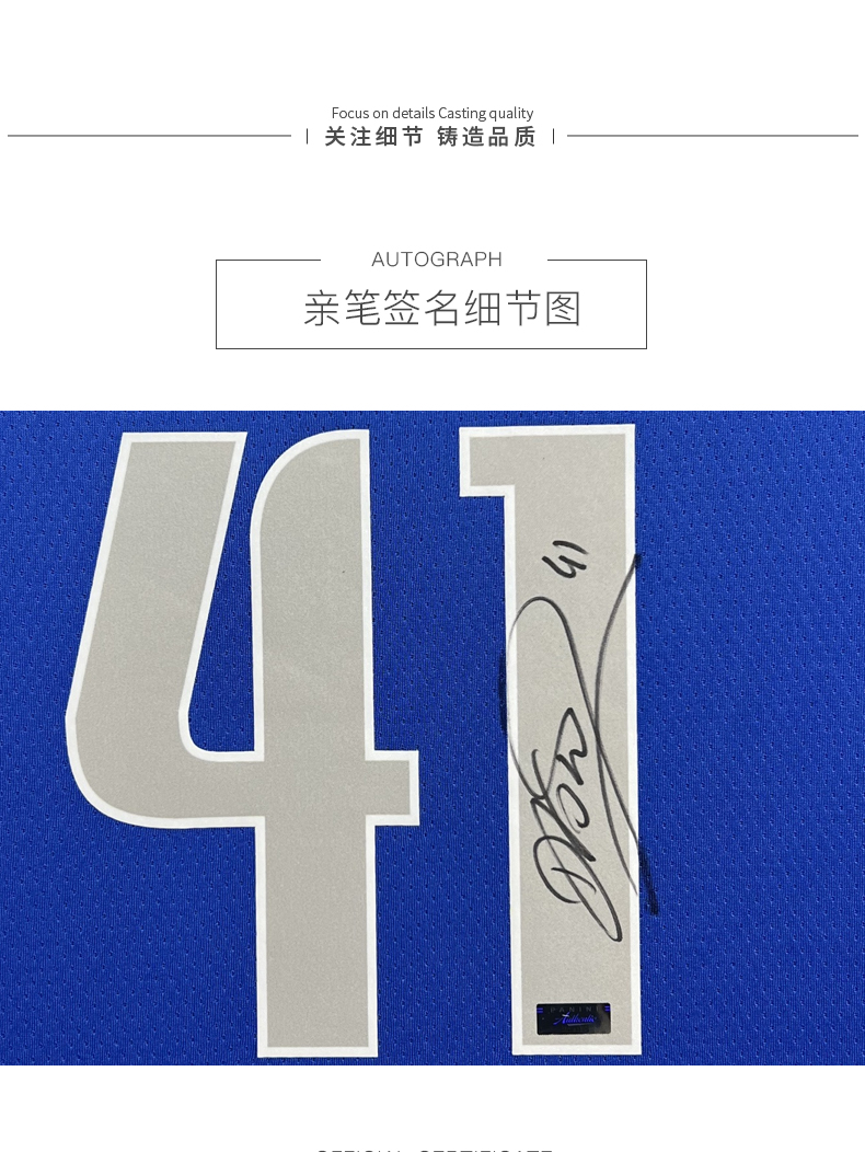 收藏系列 诺维斯基 小牛队41号蓝色 亲笔签名球衣