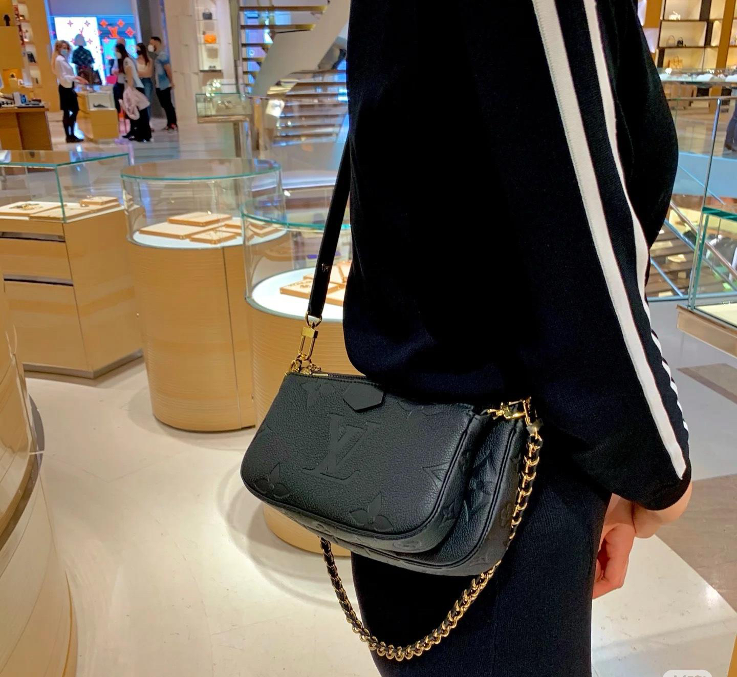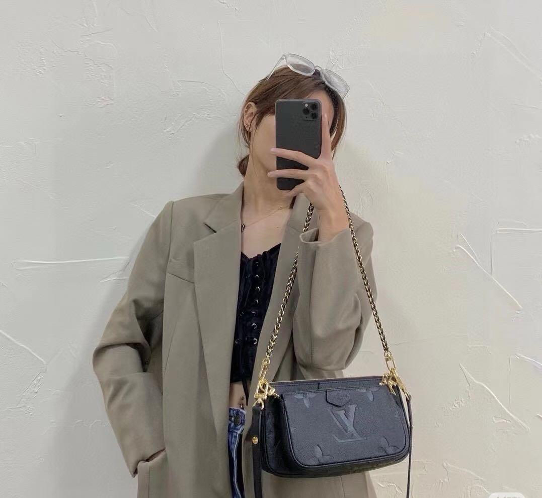 正品二手 LV 五合一 黑色 压纹牛皮 斜挎包💝 98新 24x13 配件:肩带 链条 两子袋 防尘袋。多种背法很时尚