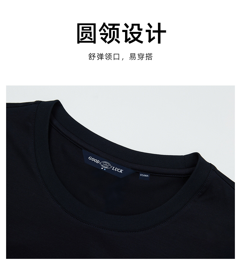 【纯棉】德鲨男装蓝色短袖圆领T恤2026夏新款全棉休闲上衣打底衫