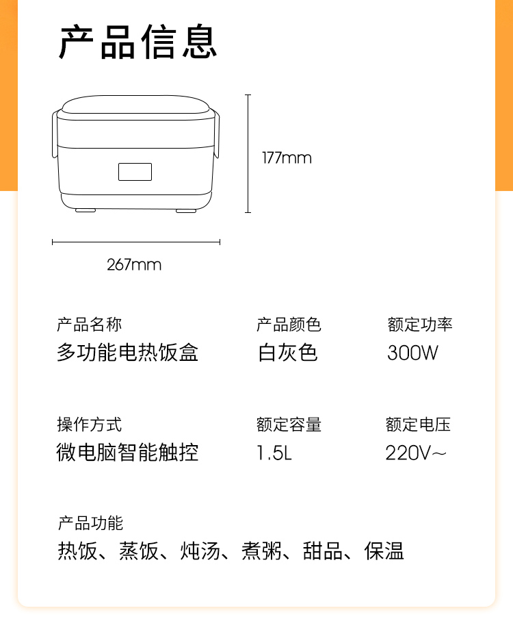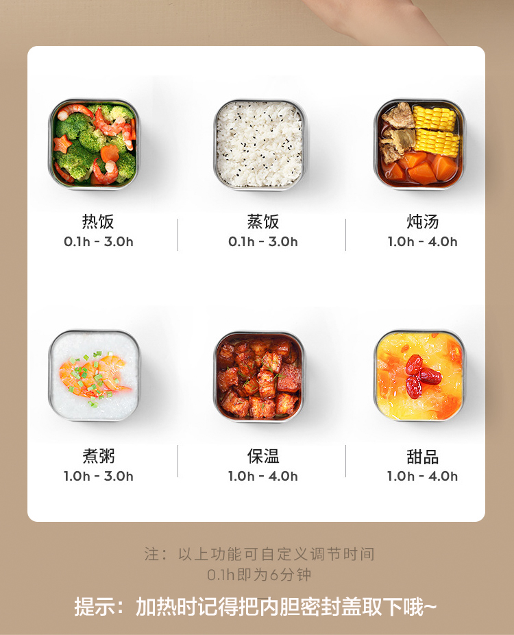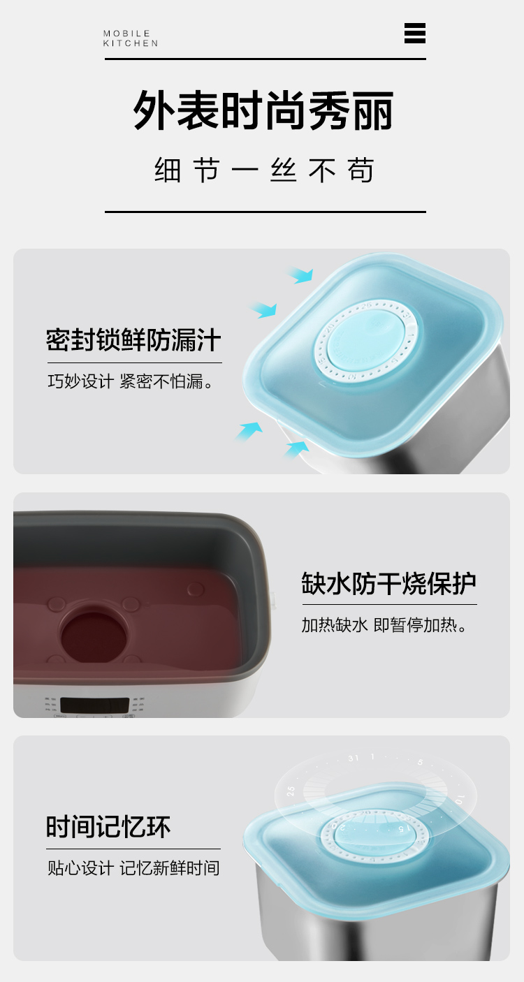 生活元素(LIFE ELEMENT)插电式电热饭盒 保温饭盒 便携式加热饭盒双层不锈钢内胆 1.5L三胆 F36
