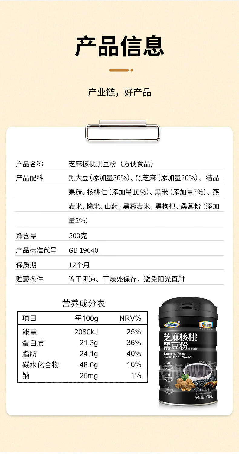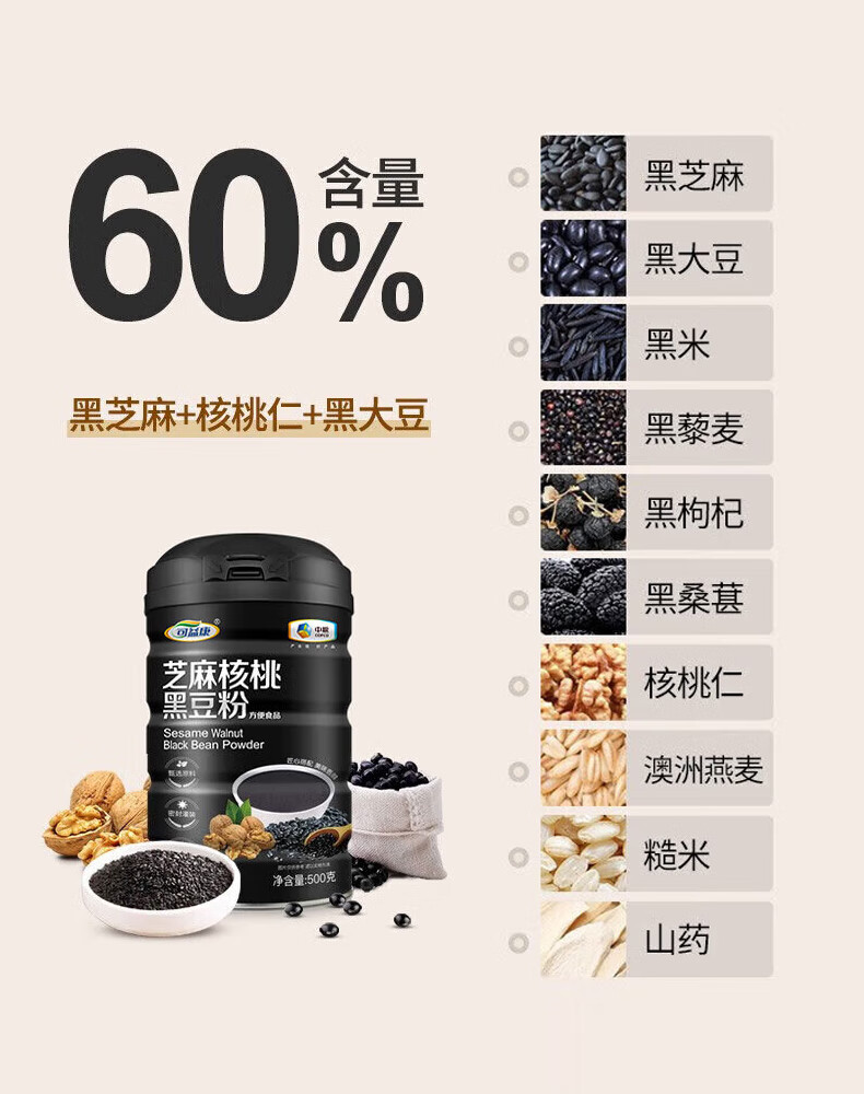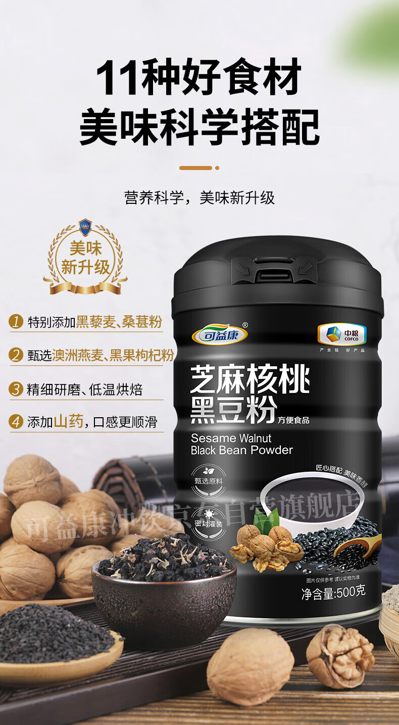 可益康中粮黑芝麻糊 核桃黑豆山药粉 即食饱腹营养代餐黑枸杞桑葚粉