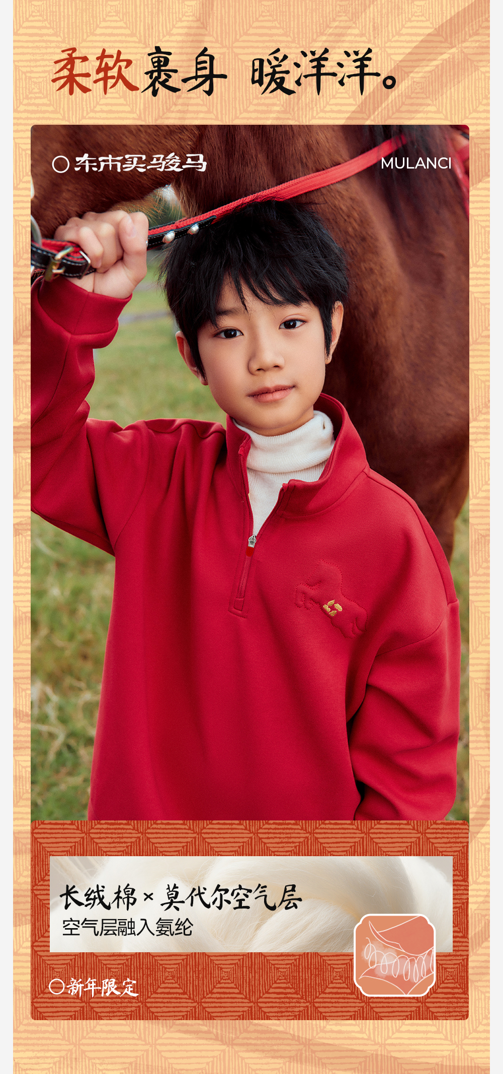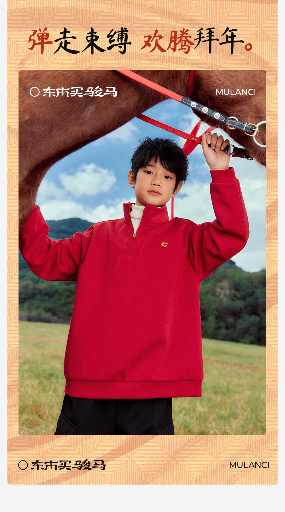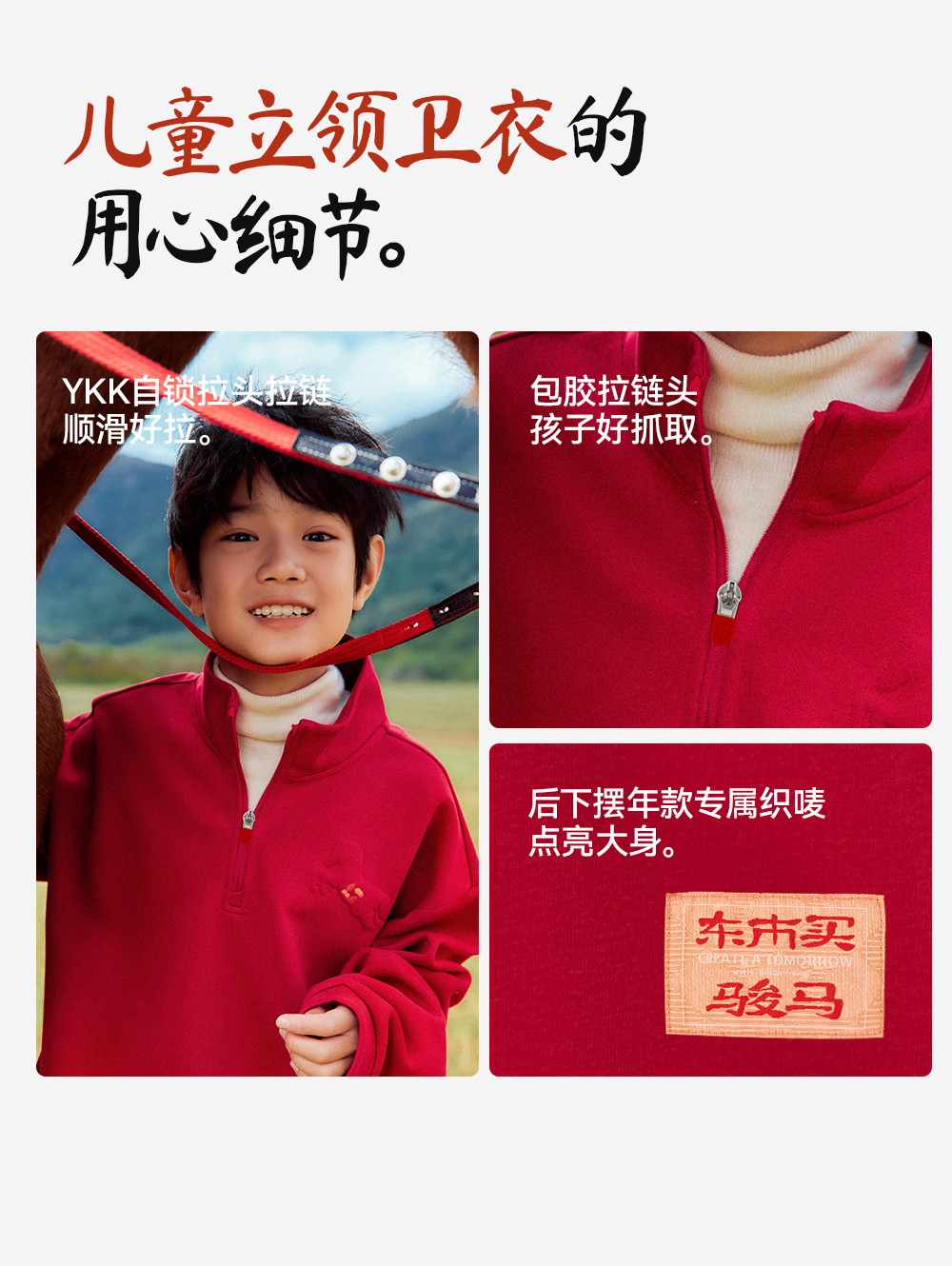 【新年款儿童立领卫衣】森林棠26新款「空气层充棉小红马」柔软半拉链卫衣20361140 商品图4