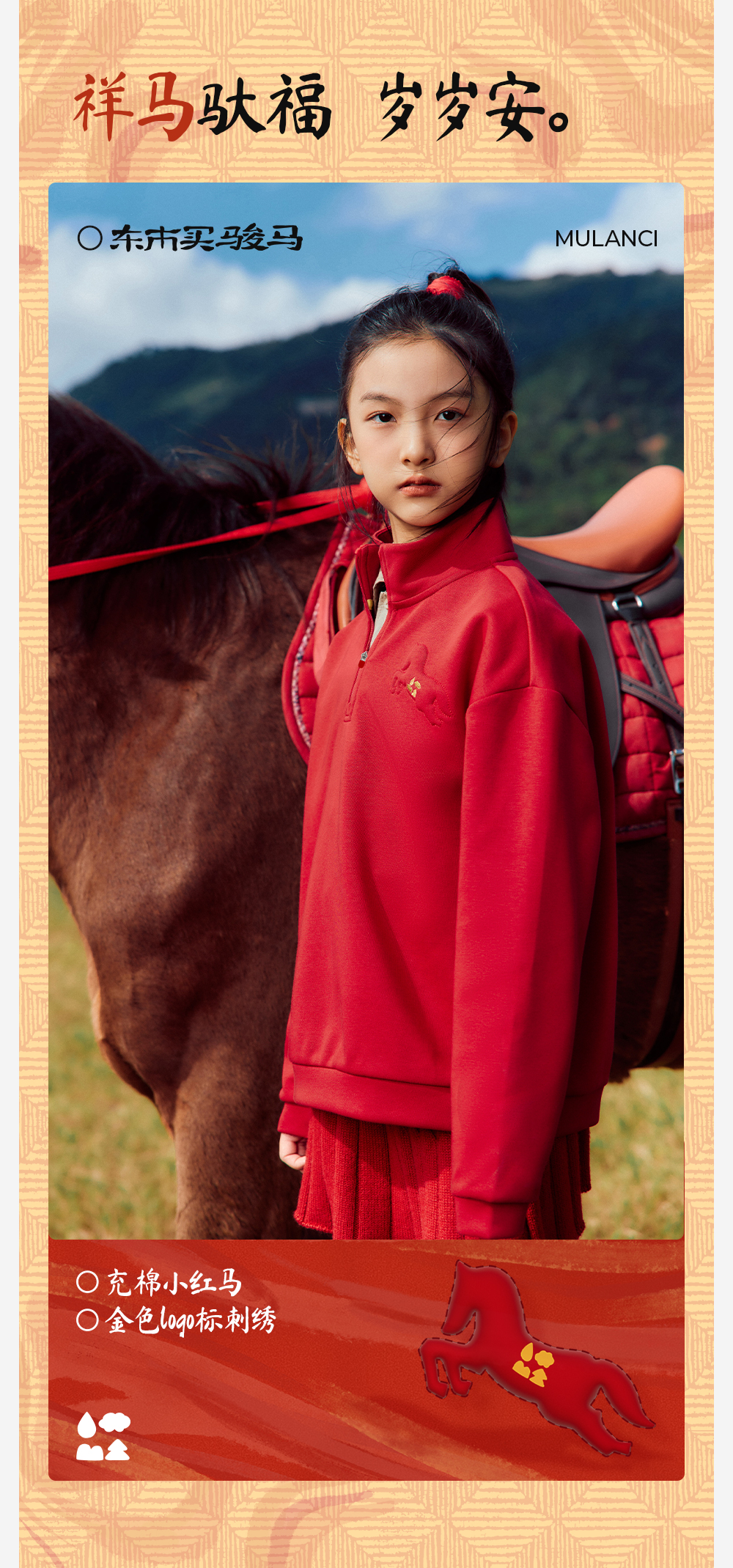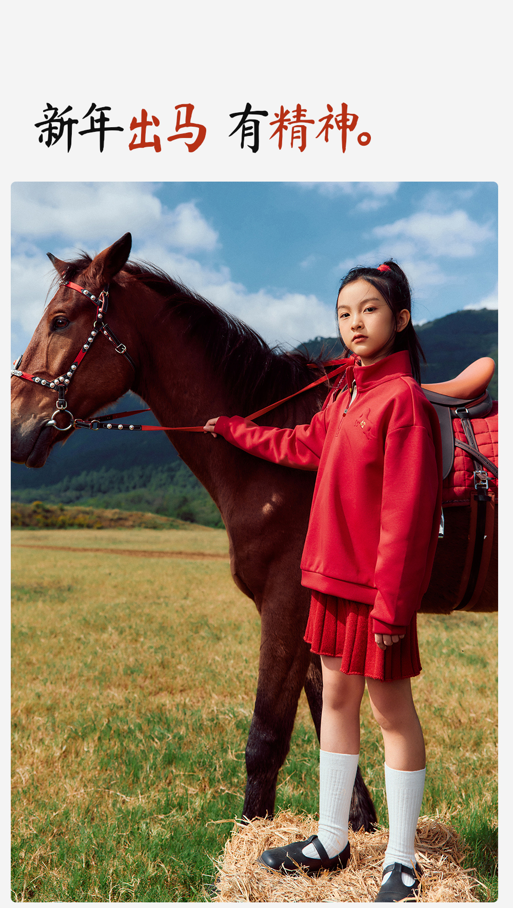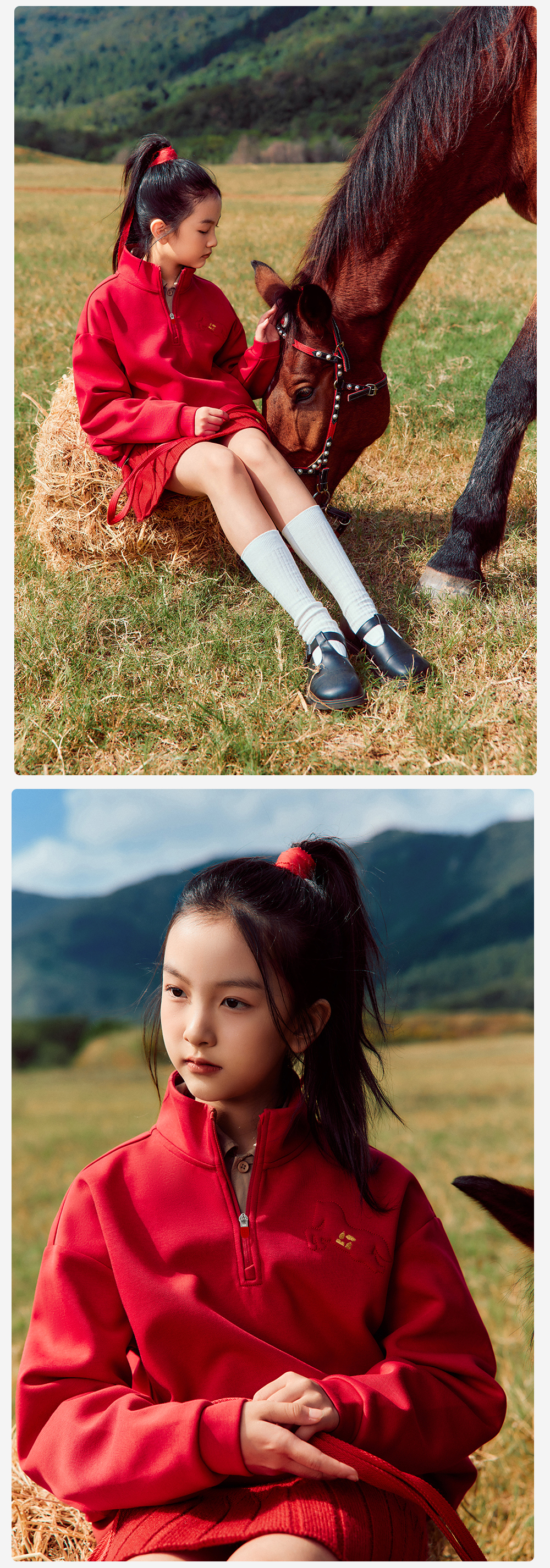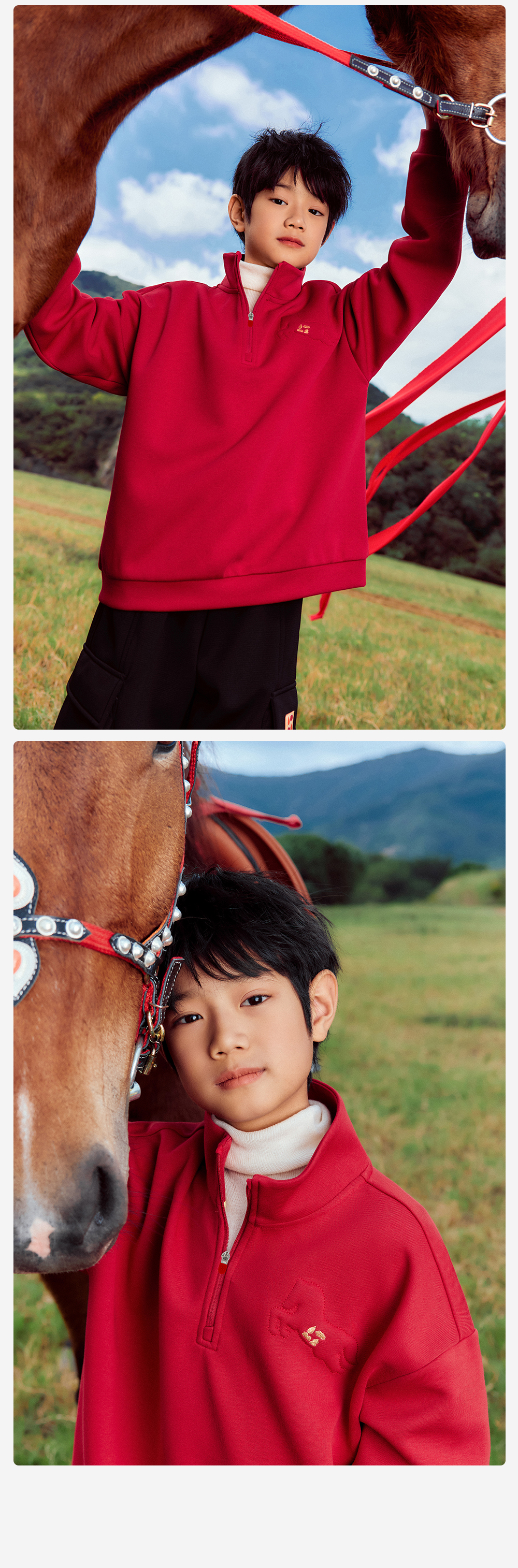 【新年款儿童立领卫衣】森林棠26新款「空气层充棉小红马」柔软半拉链卫衣20361140 商品图1