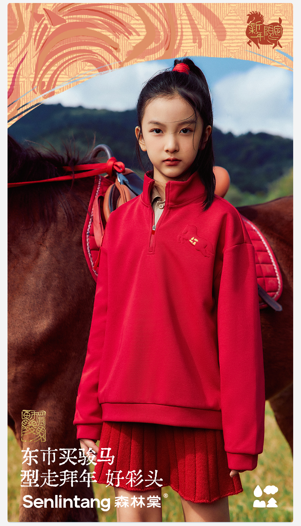 【新年款儿童立领卫衣】森林棠26新款「空气层充棉小红马」柔软半拉链卫衣20361140