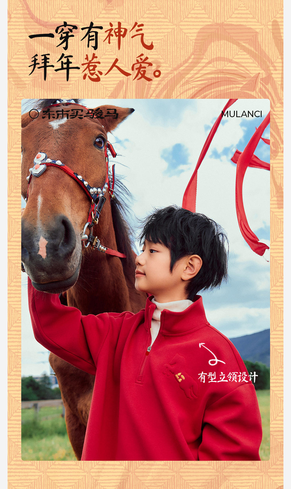 【新年款儿童立领卫衣】森林棠26新款「空气层充棉小红马」柔软半拉链卫衣20361140 商品图2