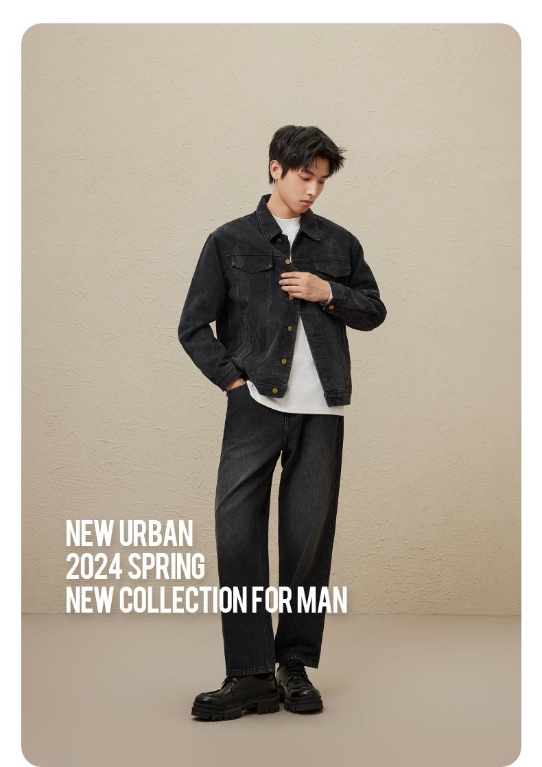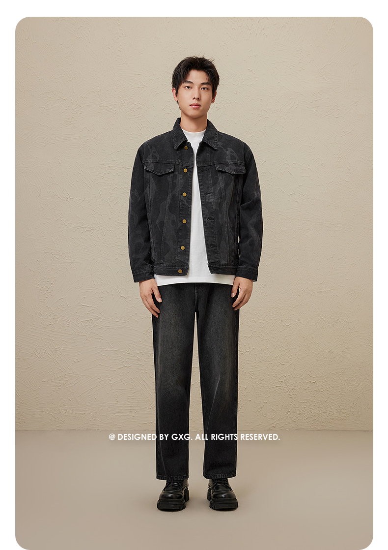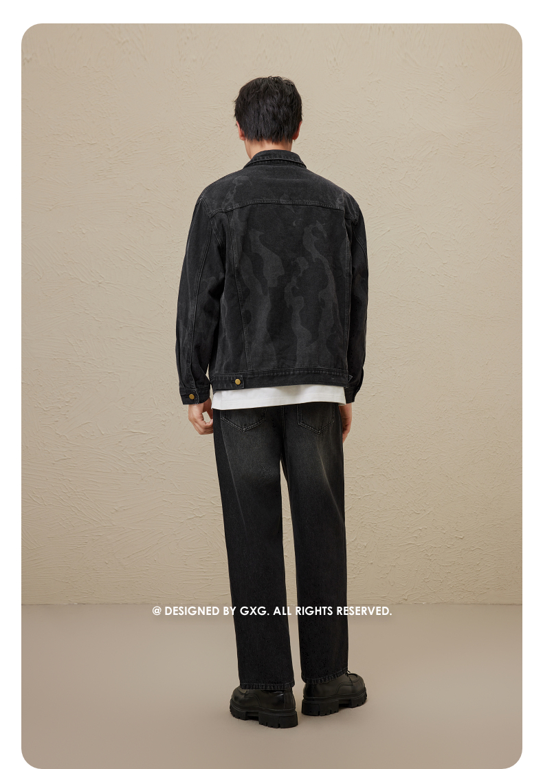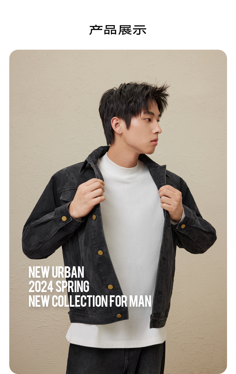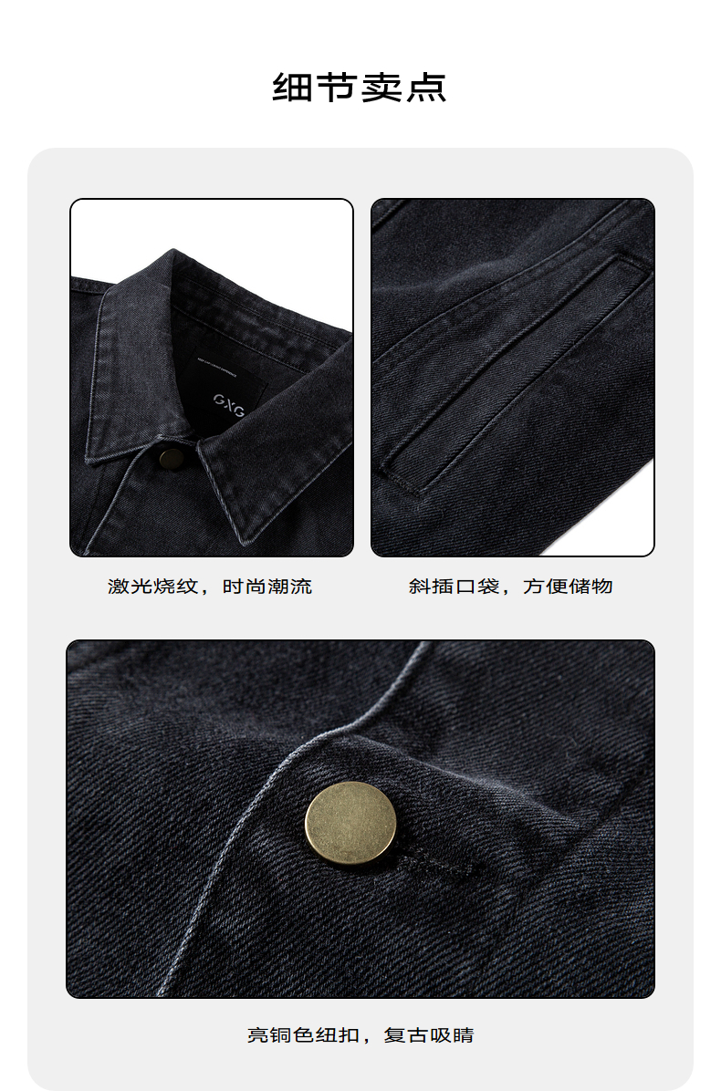 GXG男装黑色水洗休闲牛仔夹克2024春季热卖#GFD1E801611