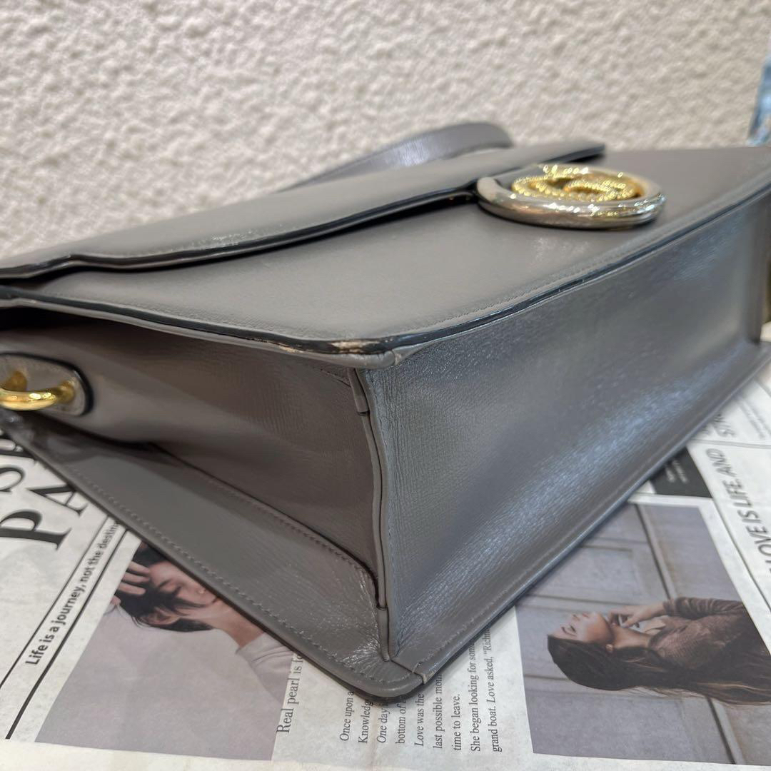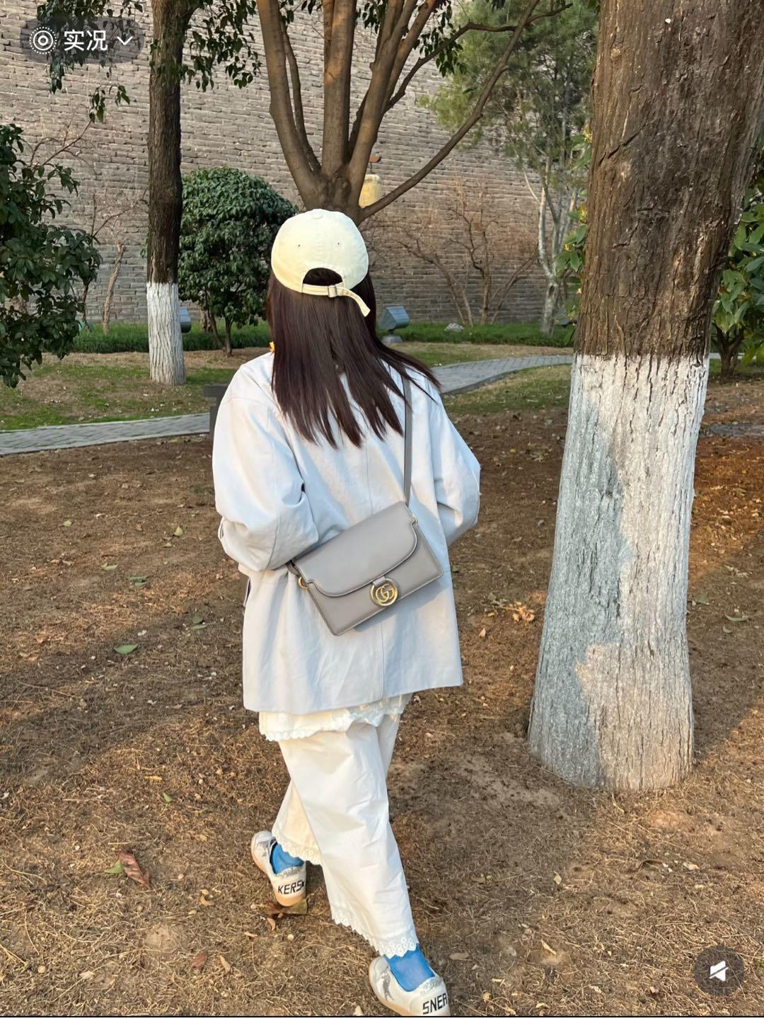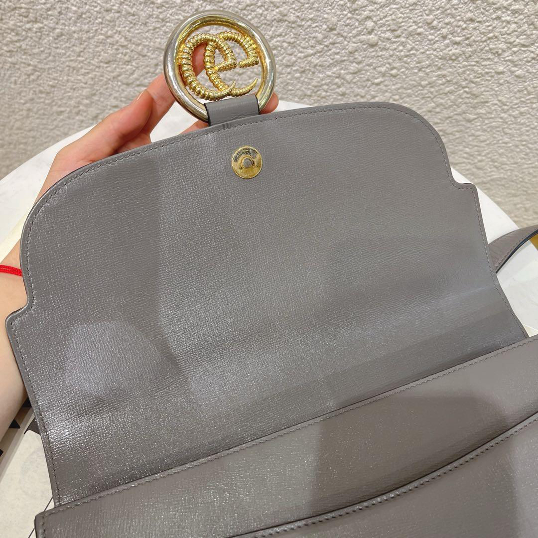 正品二手 Gucci GG Ring 灰色 牛皮 中号 螺旋金扣 斜挎包🌪️ 93新 30×20。油边正常使用感。秀款 倪妮 戚薇同款