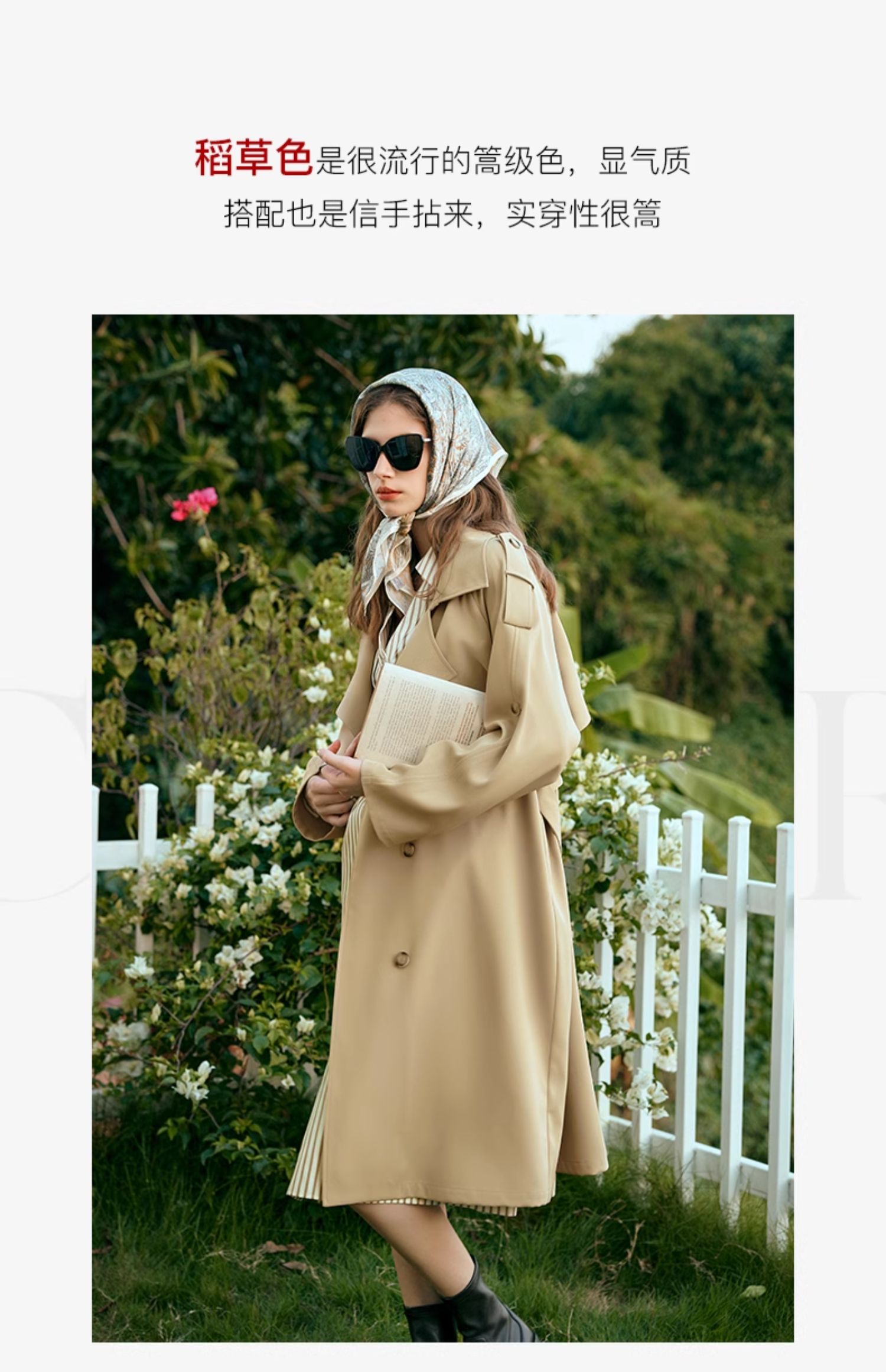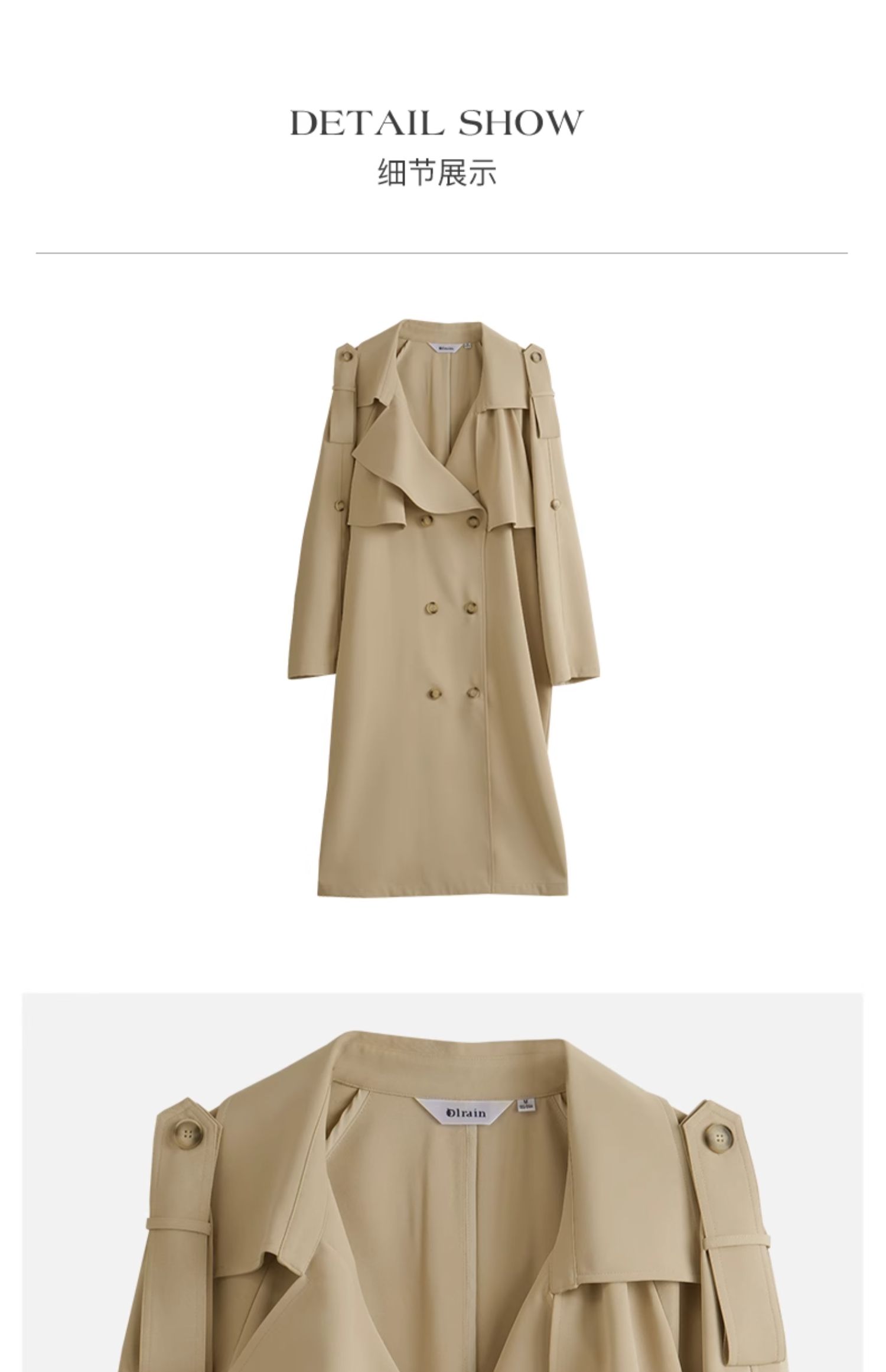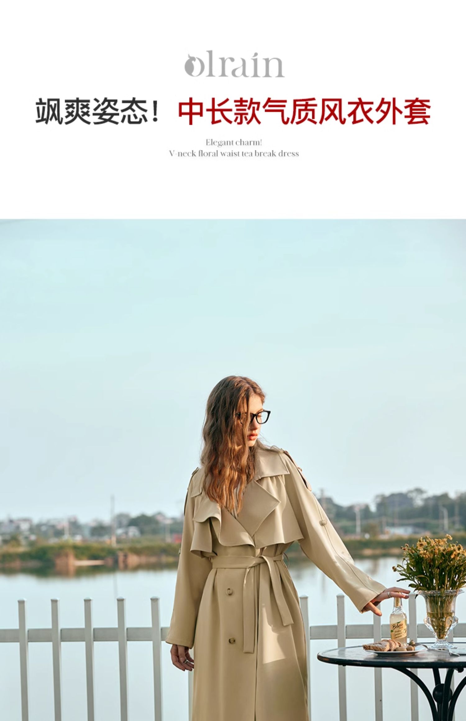OLrain欧芮儿休闲风衣女早春2024年新款时尚通勤中长款气质外套