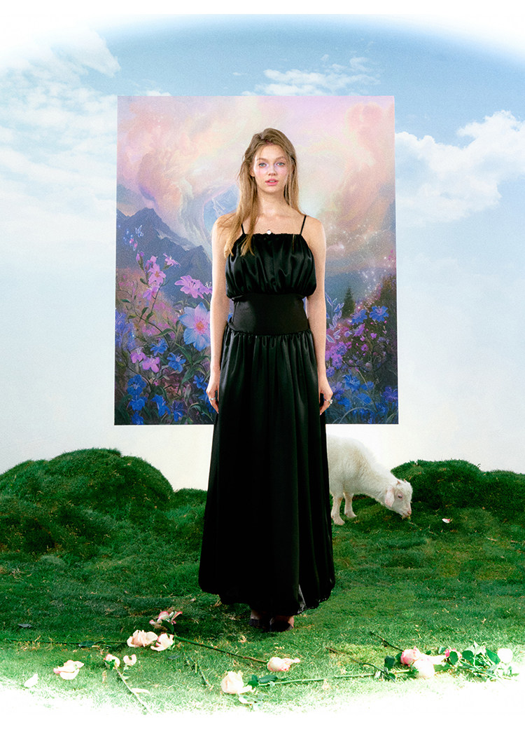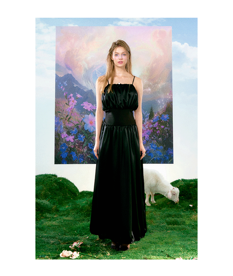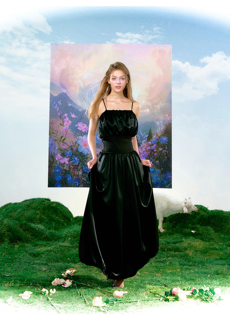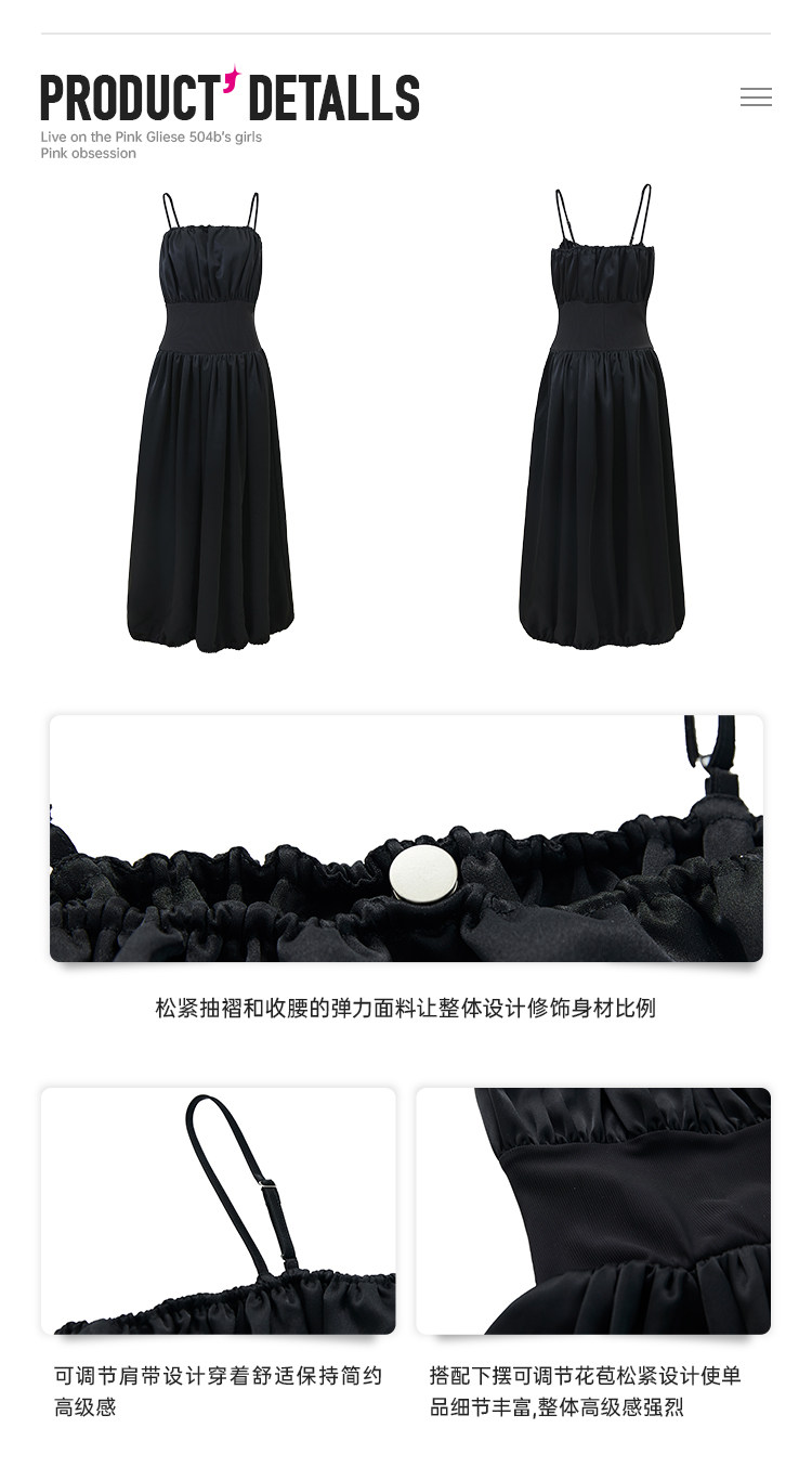 FTT FlyTheTruth 夜光曲 高冷御姐风黑色吊带裙女夏季收腰连衣裙