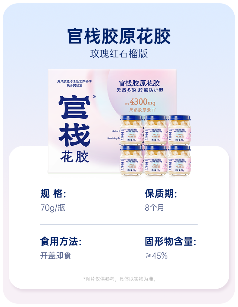 官栈营养胶原花胶70g*6(玫瑰红石榴版)