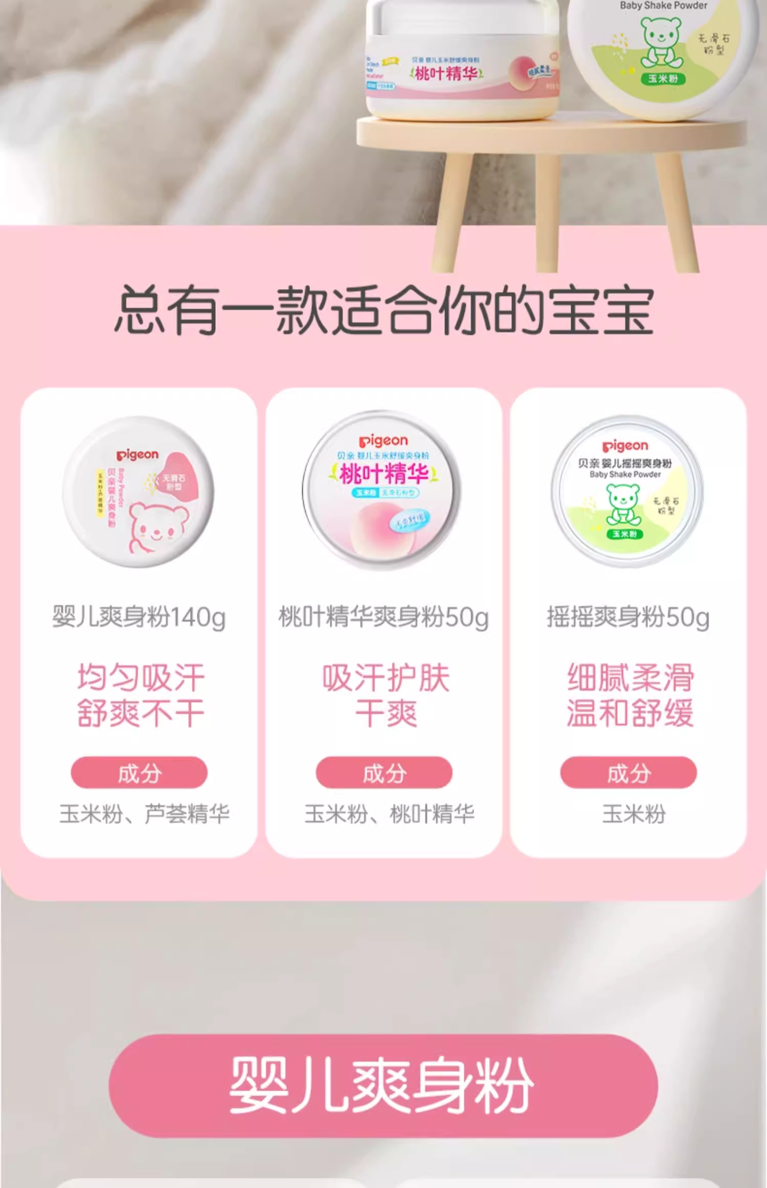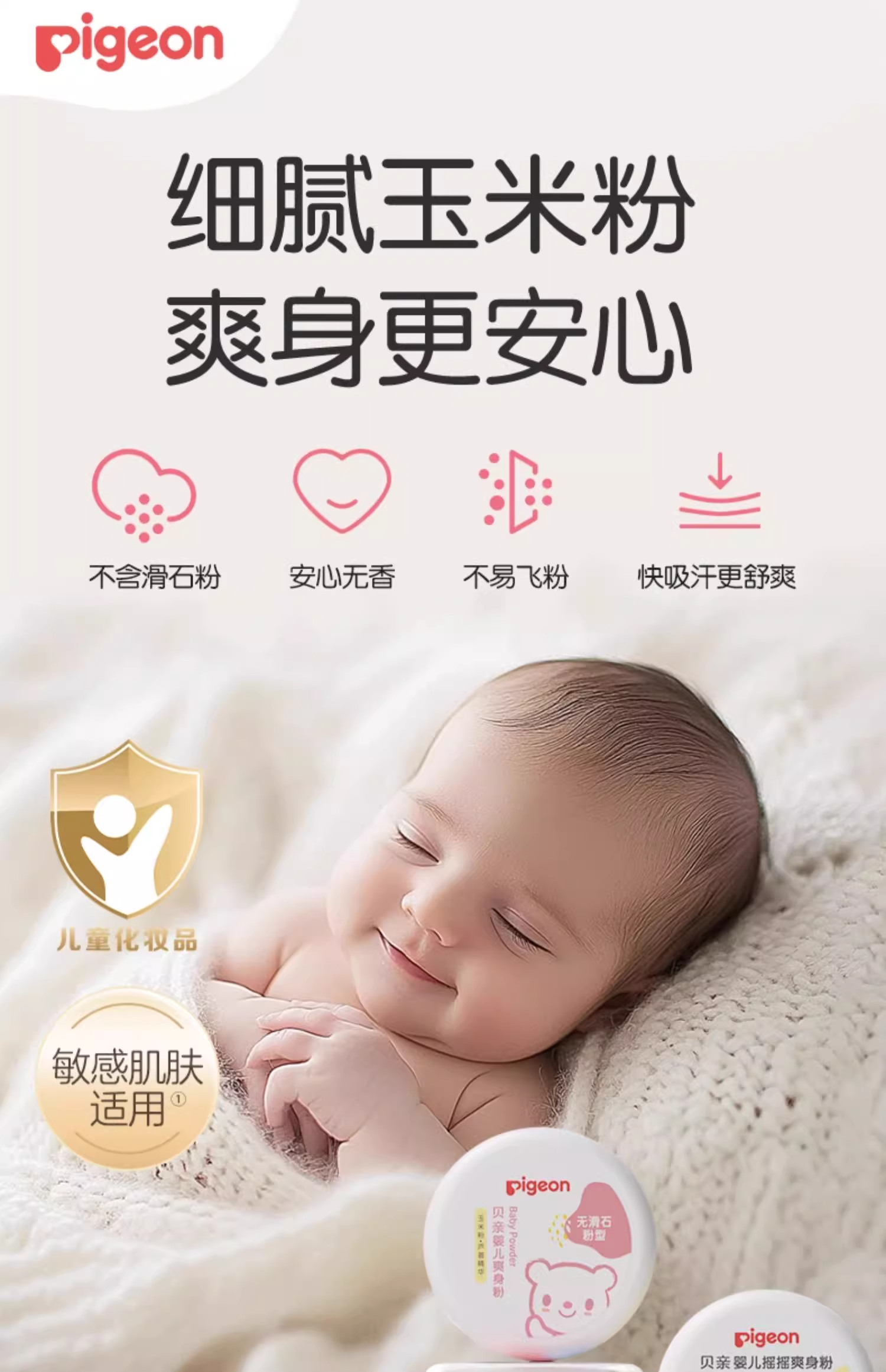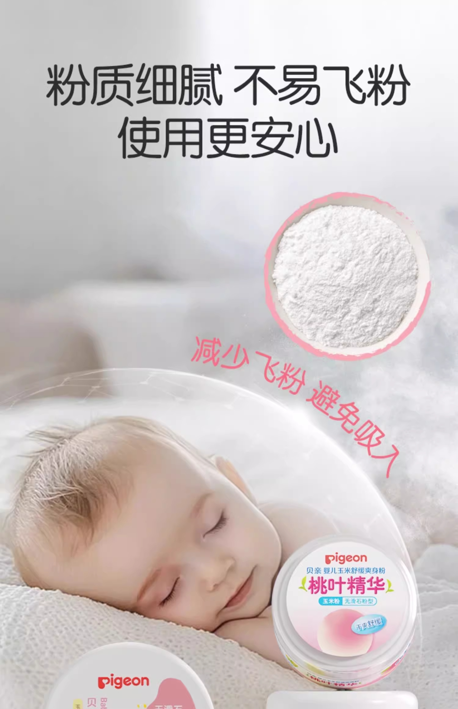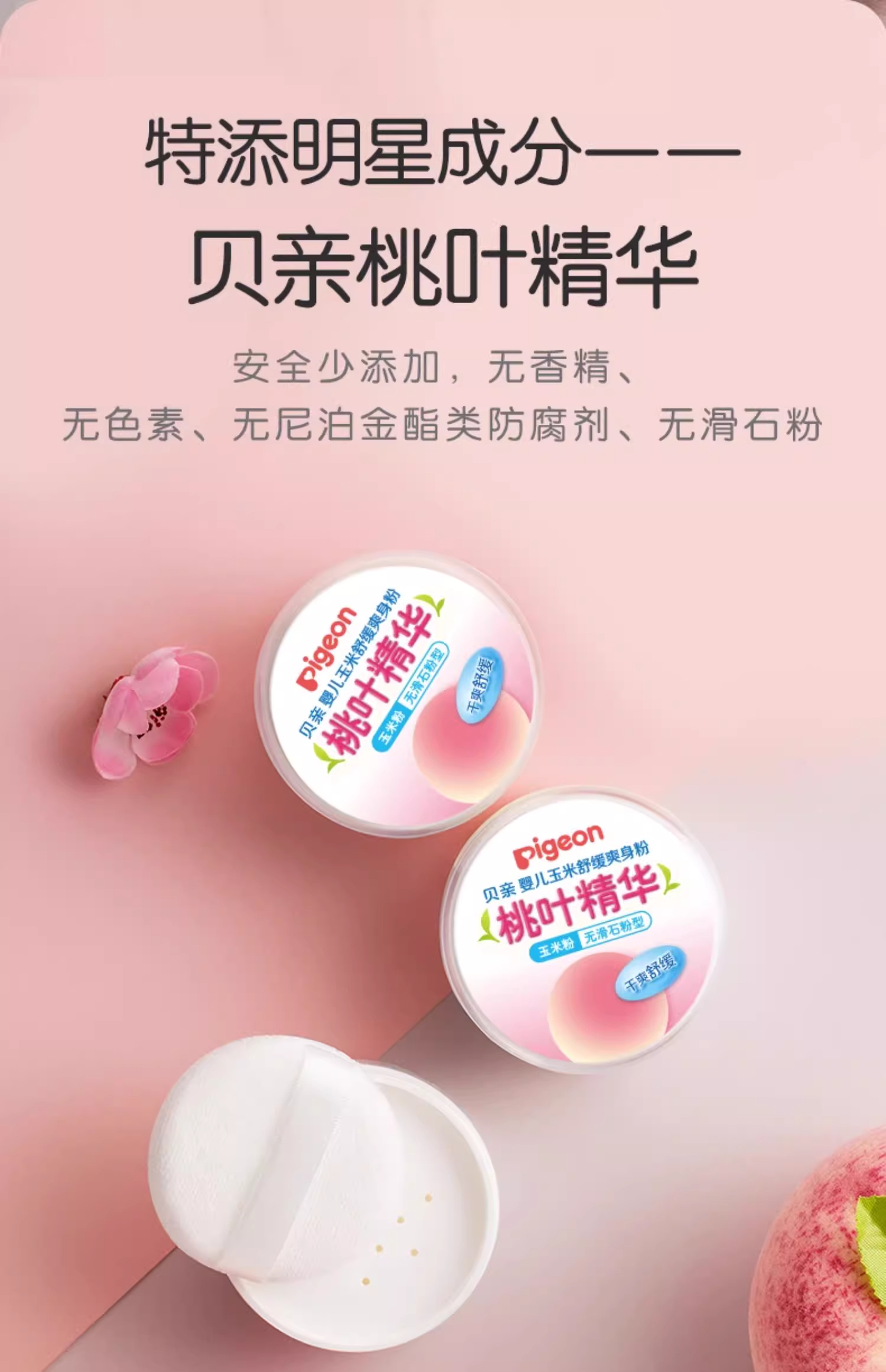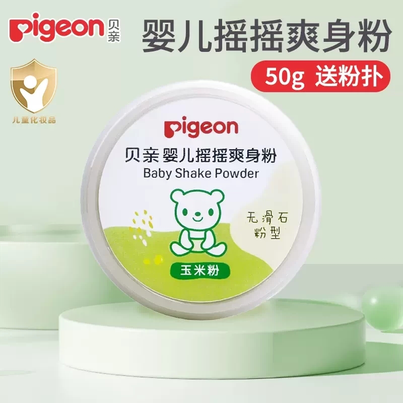 贝亲婴儿摇摇爽身粉 宝宝吸汗爽滑内含粉扑玉米粉(无滑石粉 ) 婴儿桃叶祛痱爽身粉PIG-HA09/PIG-HA10/PIG-HA15/PIG-HA23