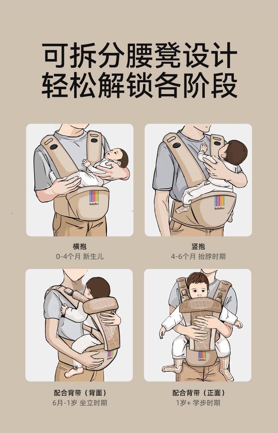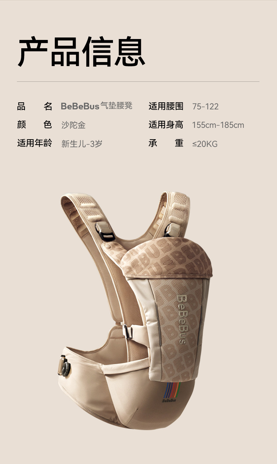 BeBeBus气垫减压Y型腰凳婴儿背带二合一透气轻便四季抱娃神器