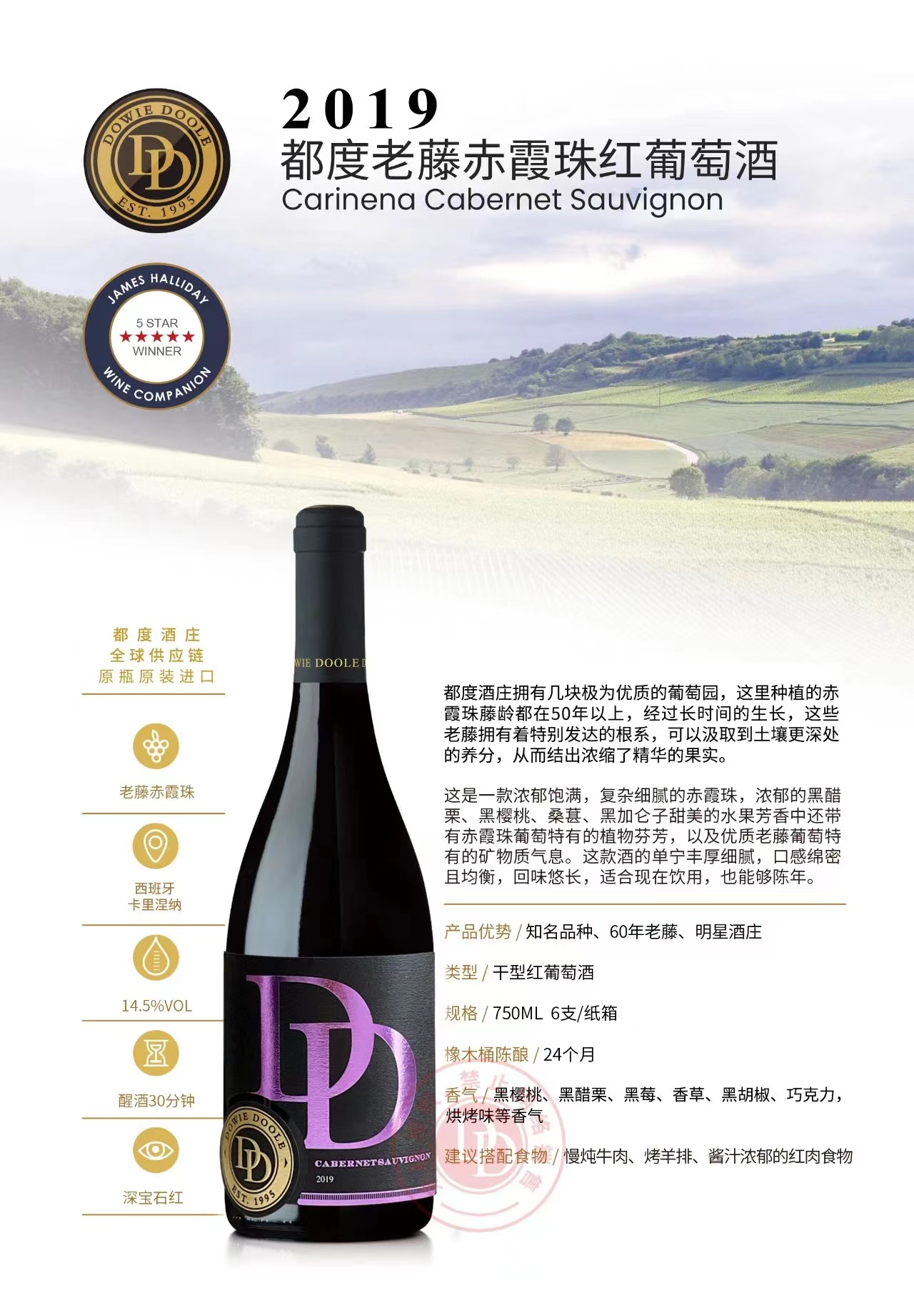 【第二件0元】Dowie Doole 都度 老藤赤霞珠 葡萄酒 750ml 买即赠送礼袋*1+海马刀*1 年份随机发