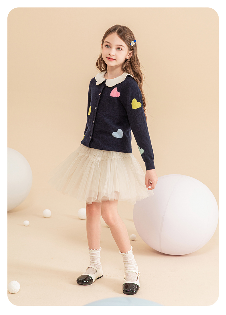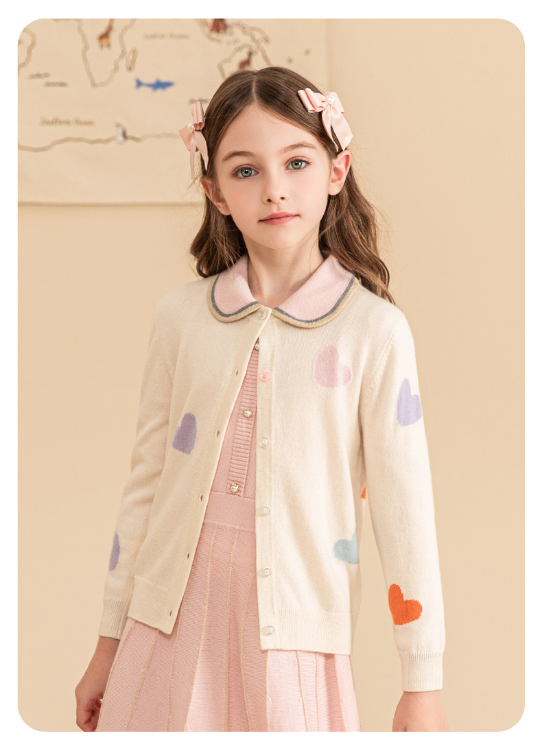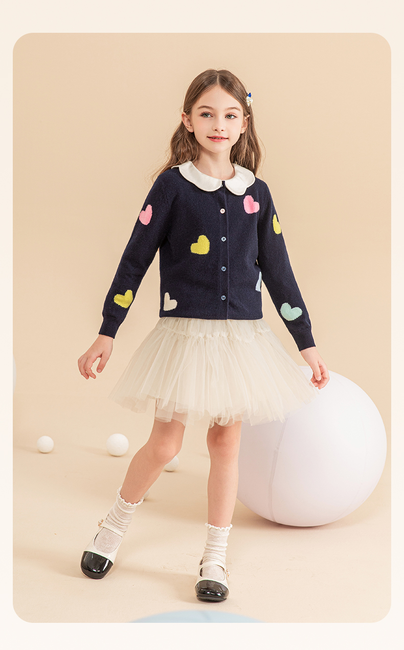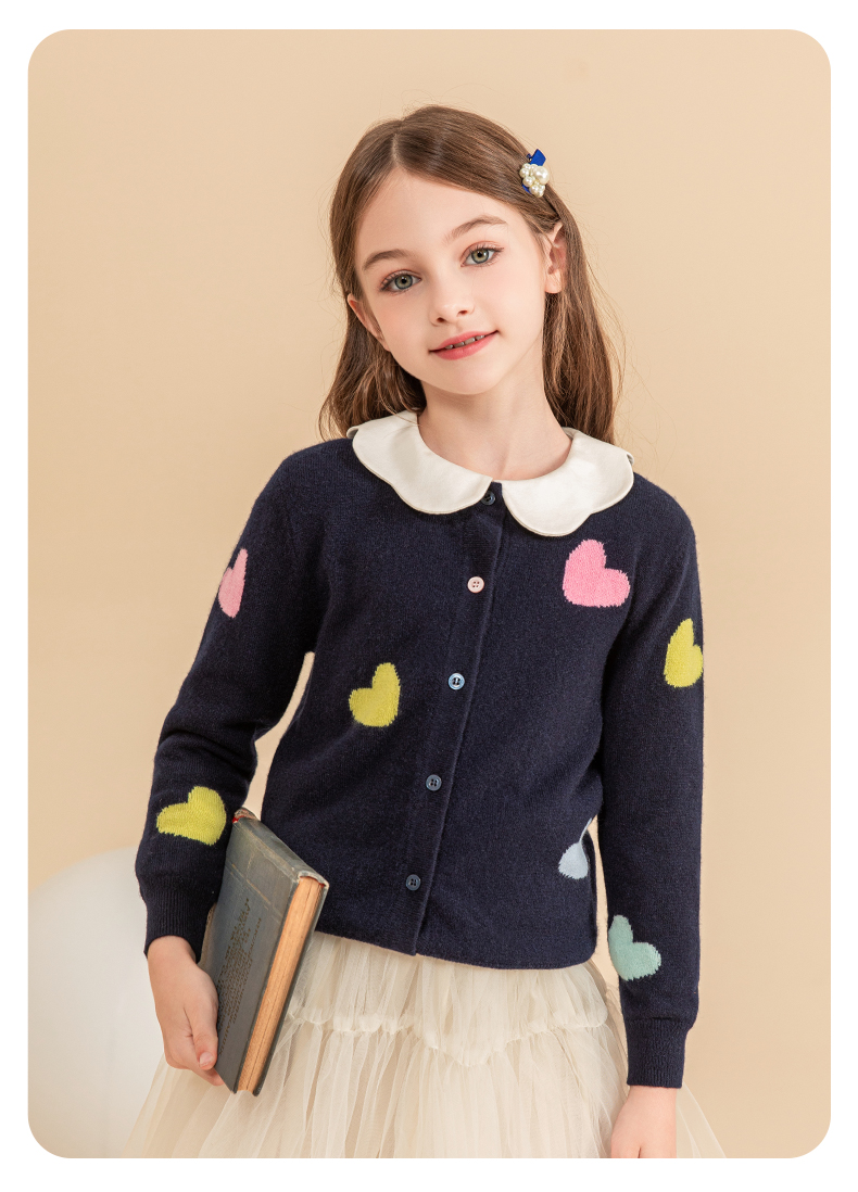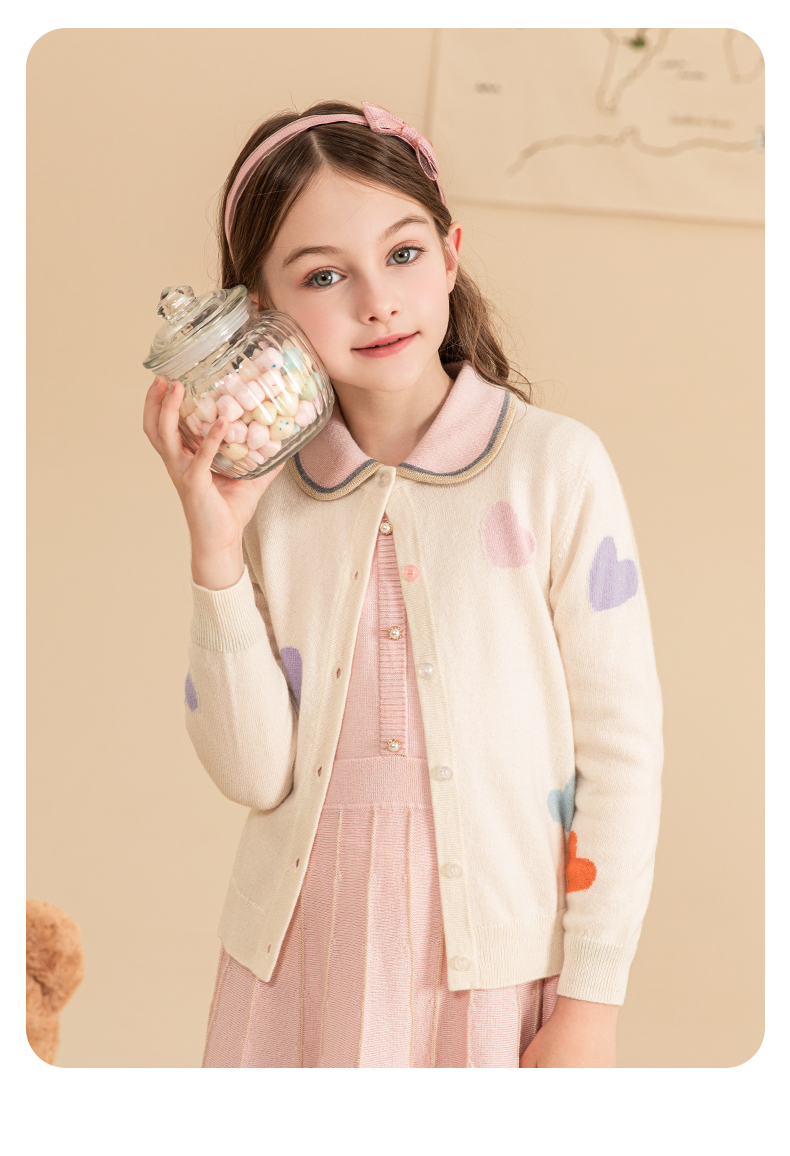 mettekids女童羊绒衫2023秋冬新款外搭针织开衫儿童洋气爱心毛衣