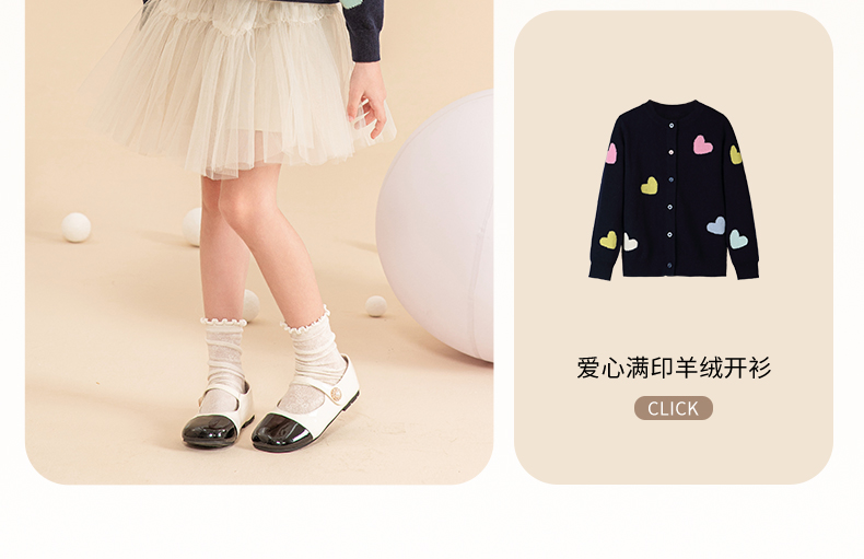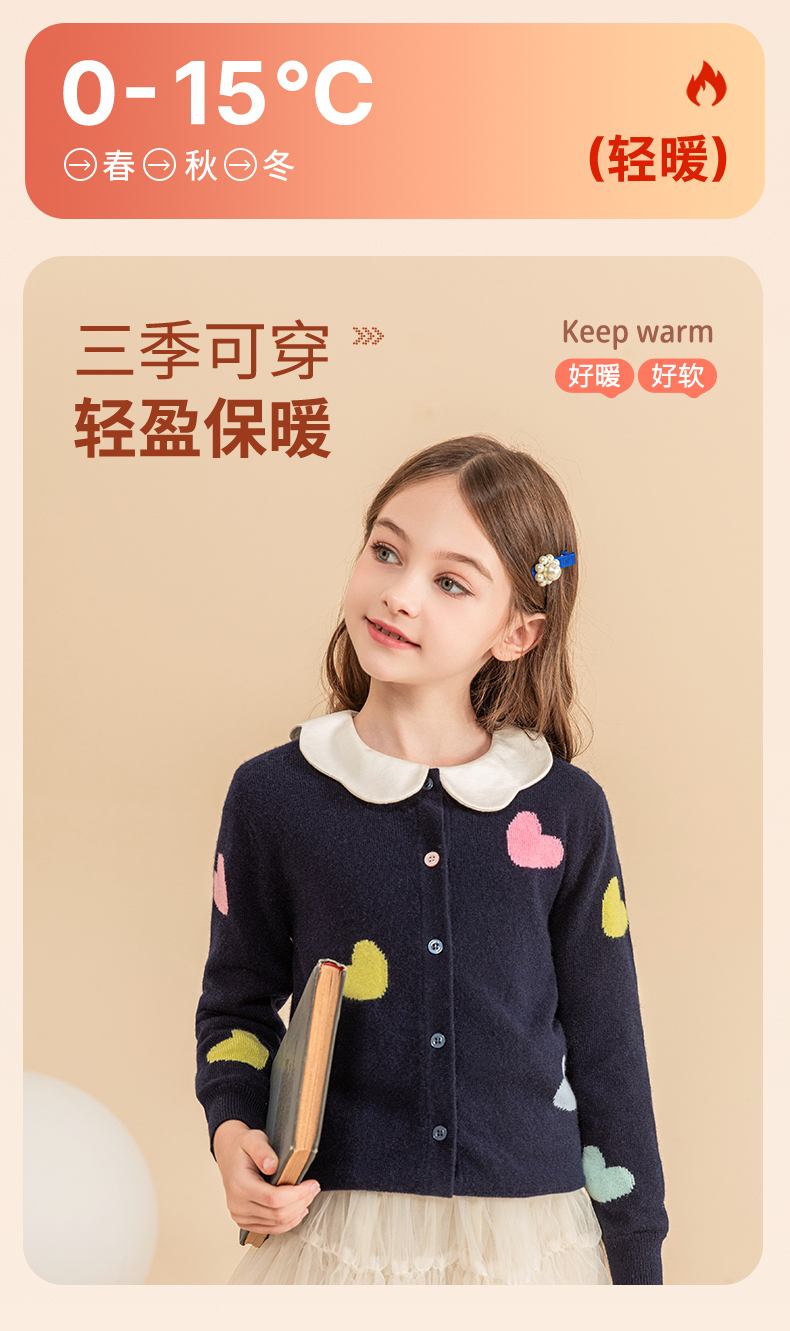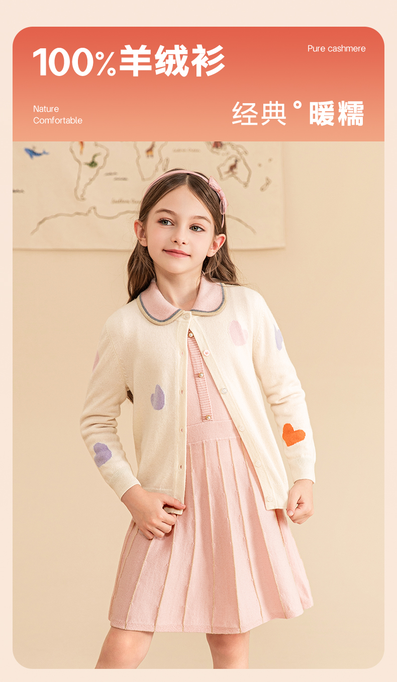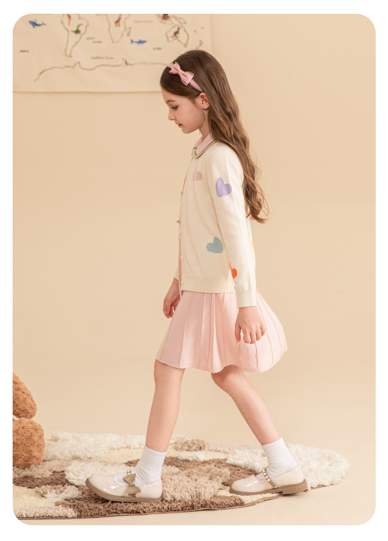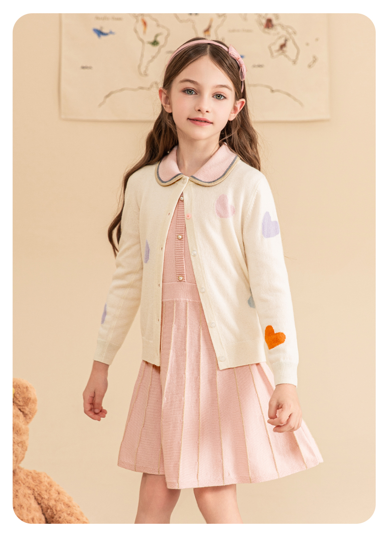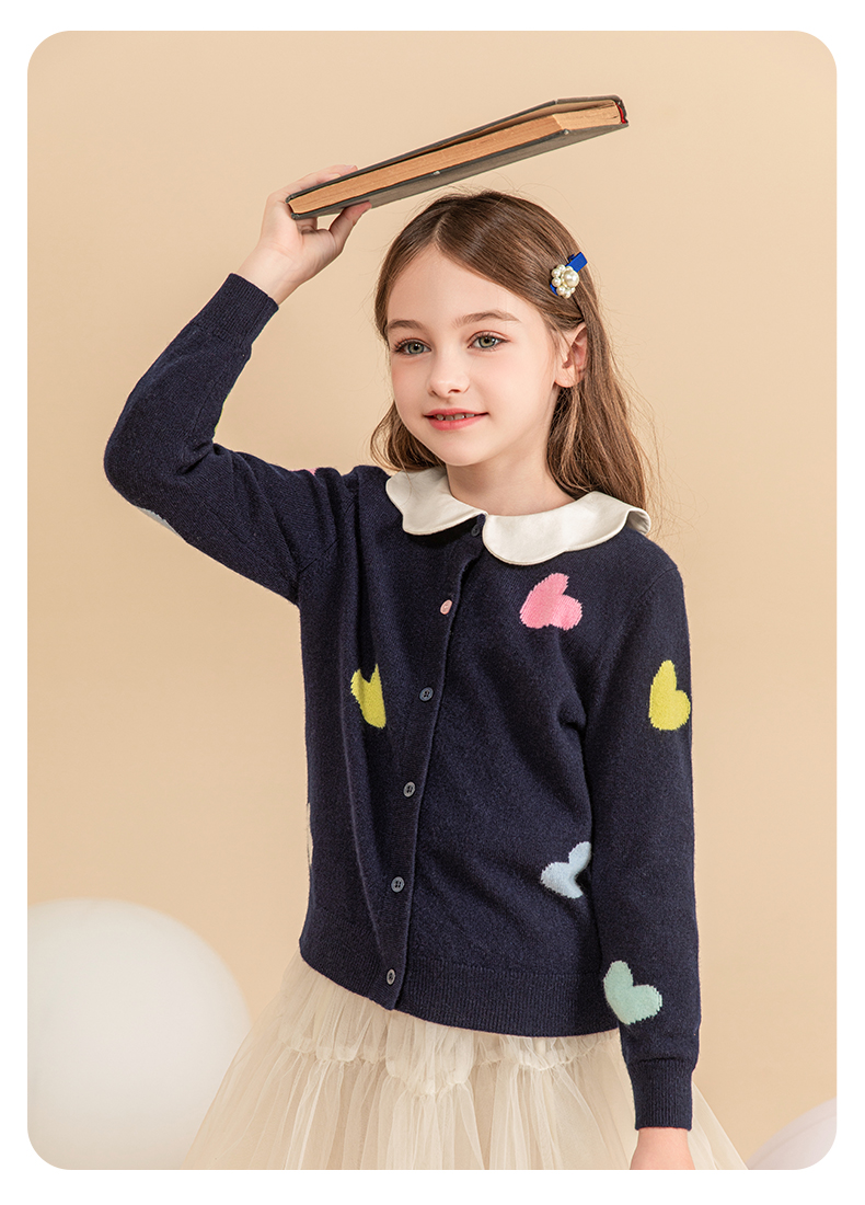 mettekids女童羊绒衫2023秋冬新款外搭针织开衫儿童洋气爱心毛衣