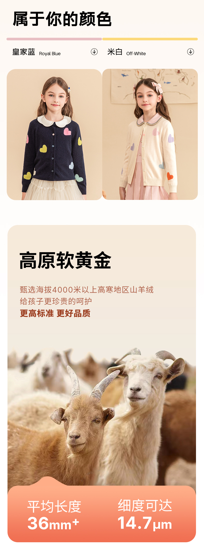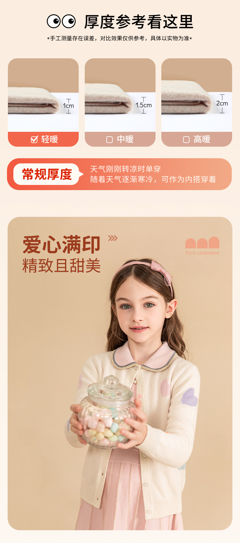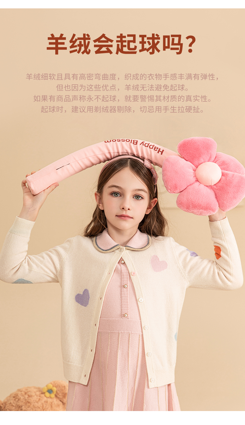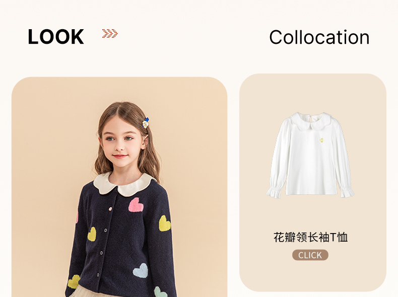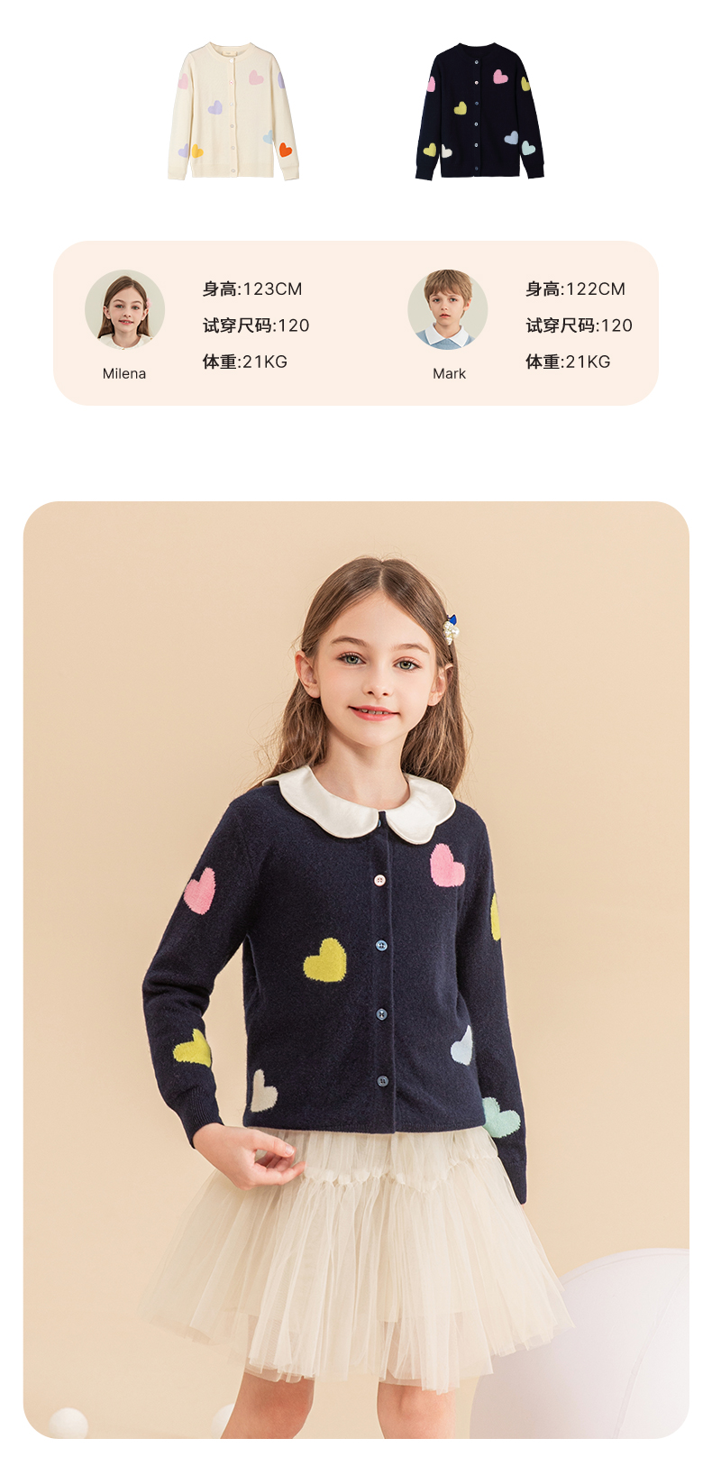 mettekids女童羊绒衫2023秋冬新款外搭针织开衫儿童洋气爱心毛衣