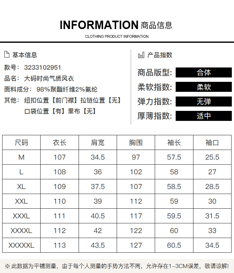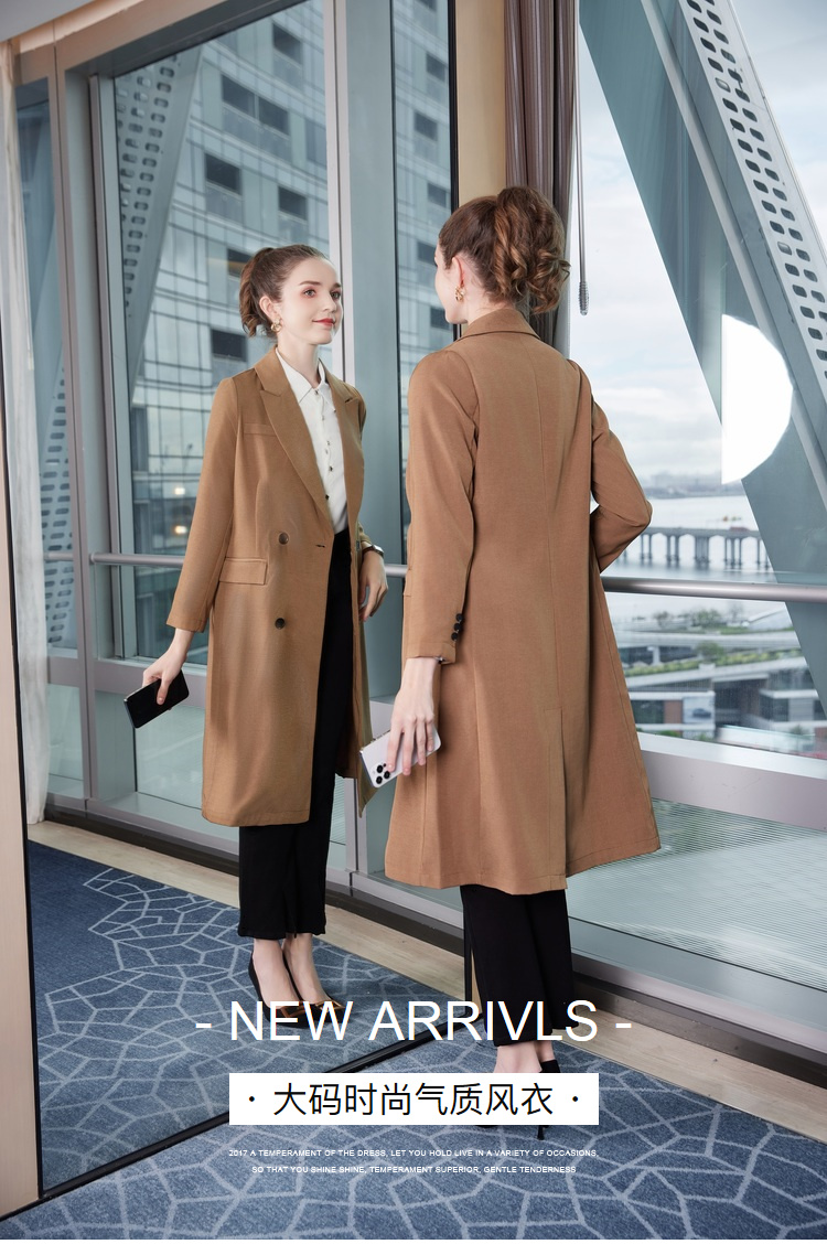 奢姿2025春季新款大码女装纽扣纯色外套胖mm大翻领气质时尚风衣3233102951