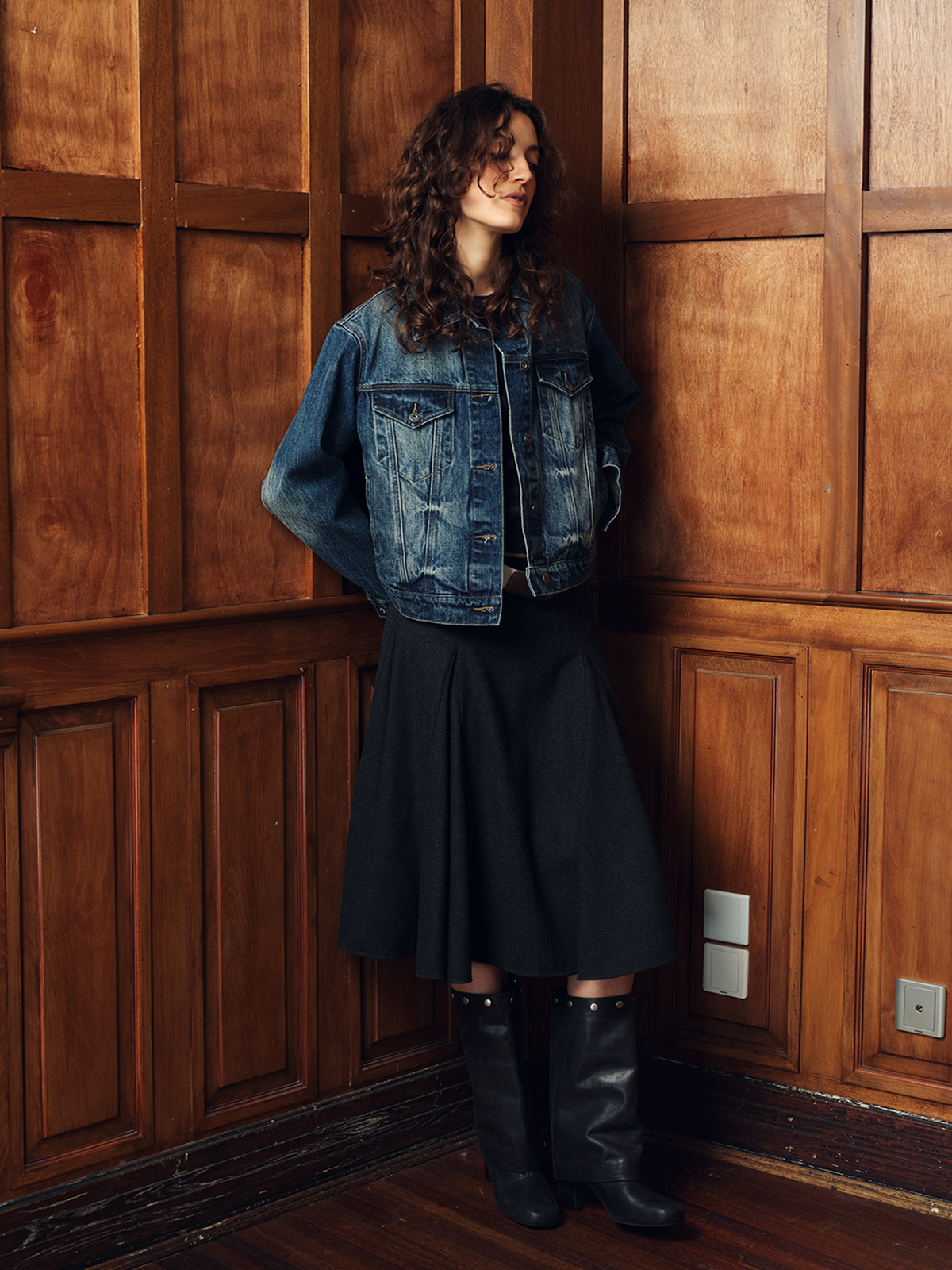 Evistub girls/E-5QWT1240/酵洗扎花重工艺牛仔夹克