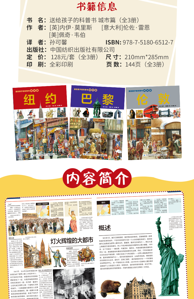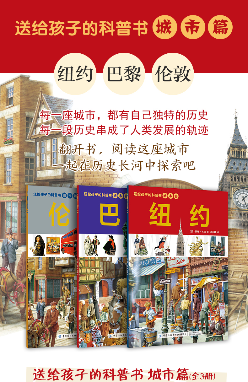 2019新书 送给孩子的科普书 城市篇 伦敦 巴黎 纽约 全3册 城市发展研究 城市科普书籍 城市交通名人名建筑文化知识普及图书籍