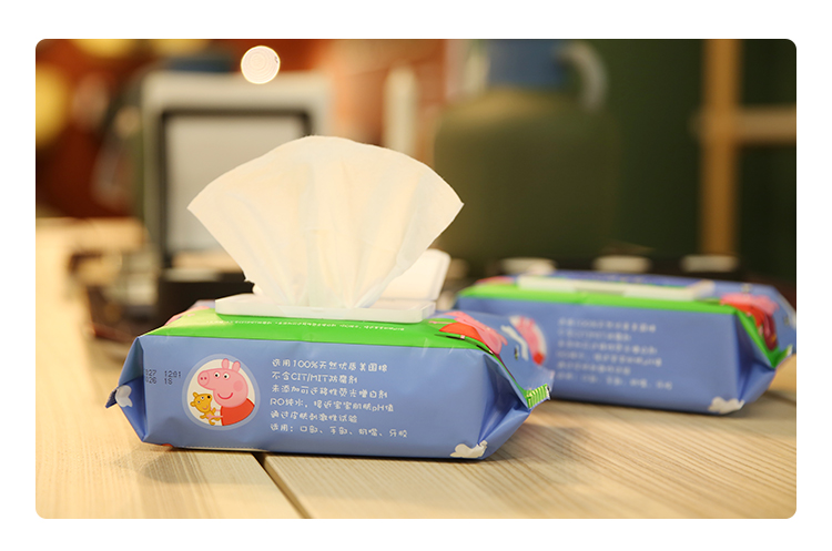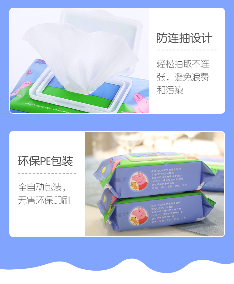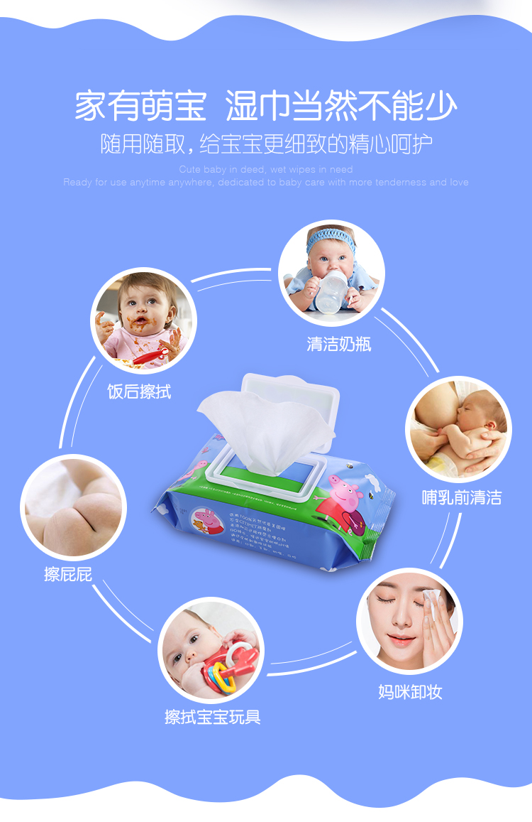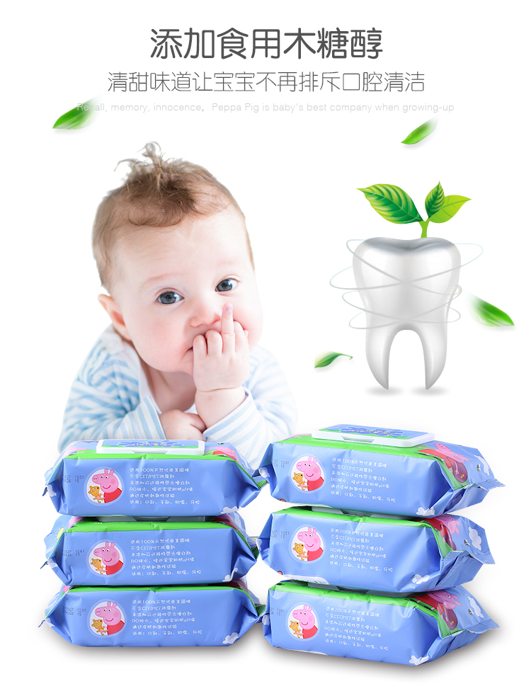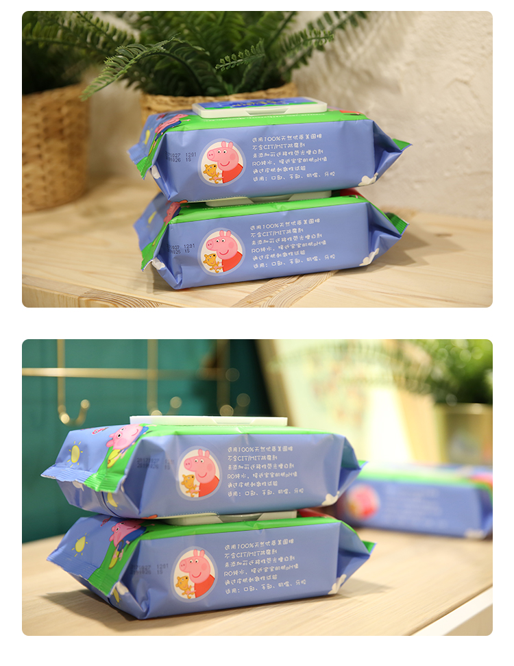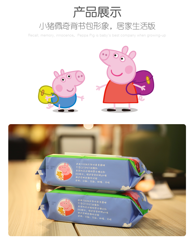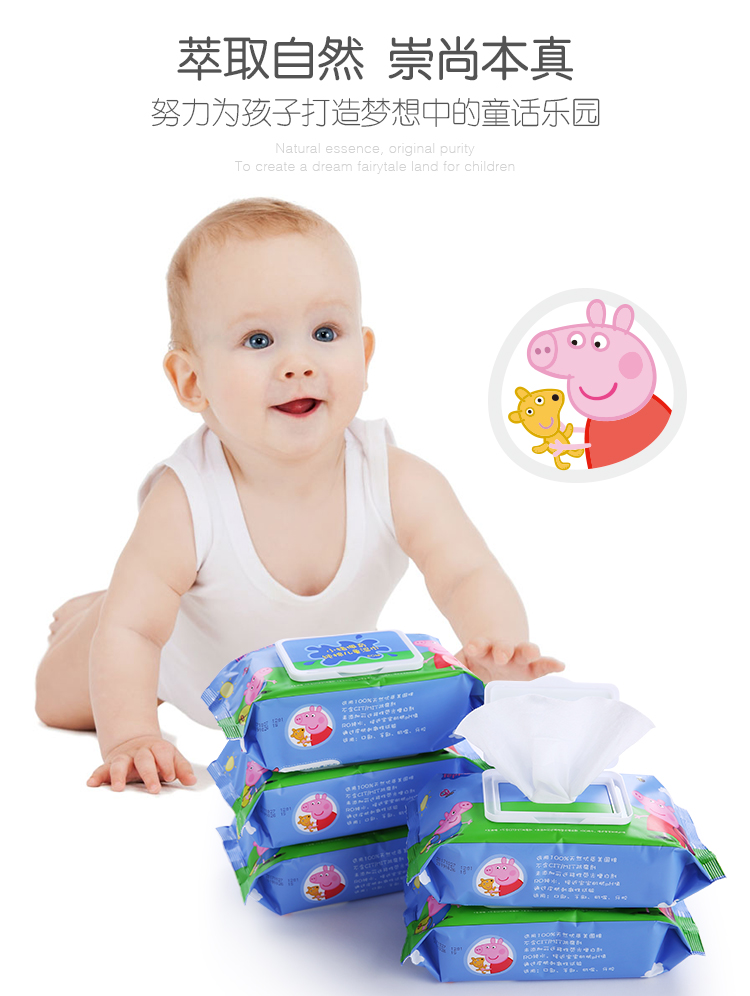 百诺恩小猪佩奇纯棉湿巾婴儿宝宝手口湿巾加厚加大保湿80抽5包装