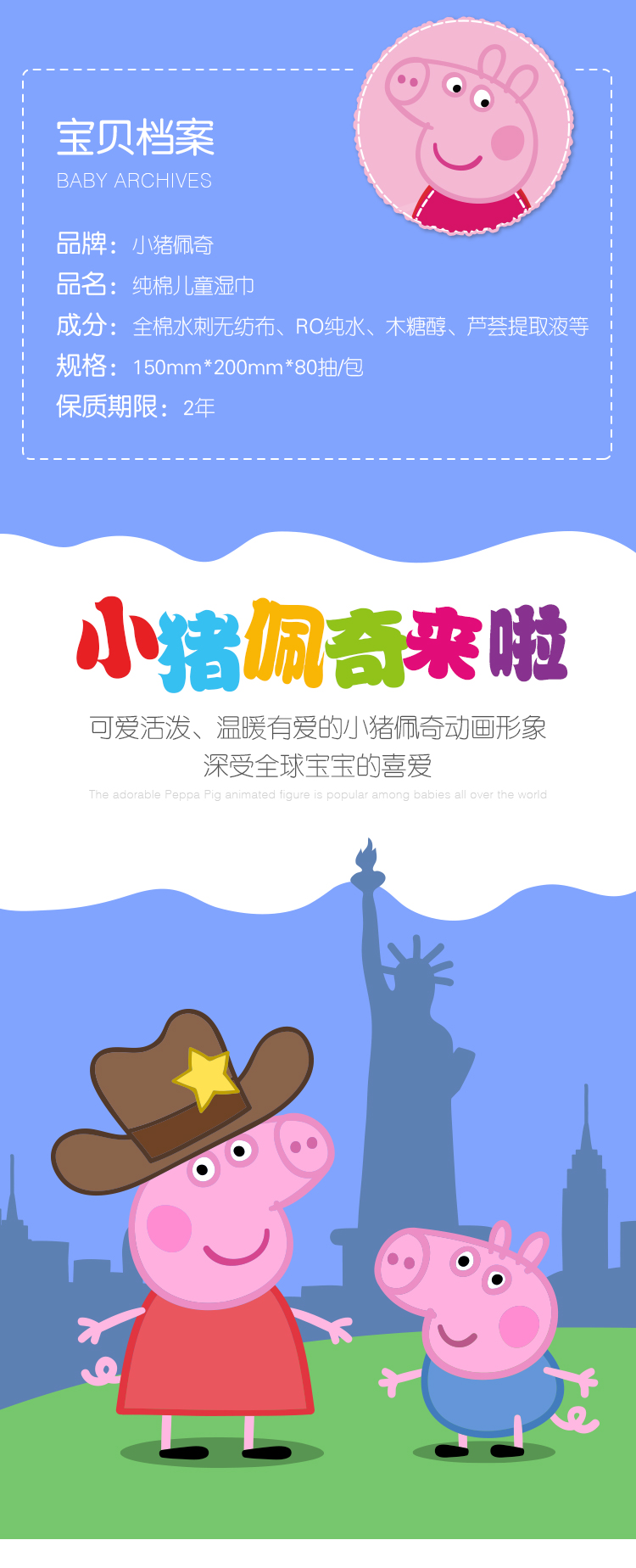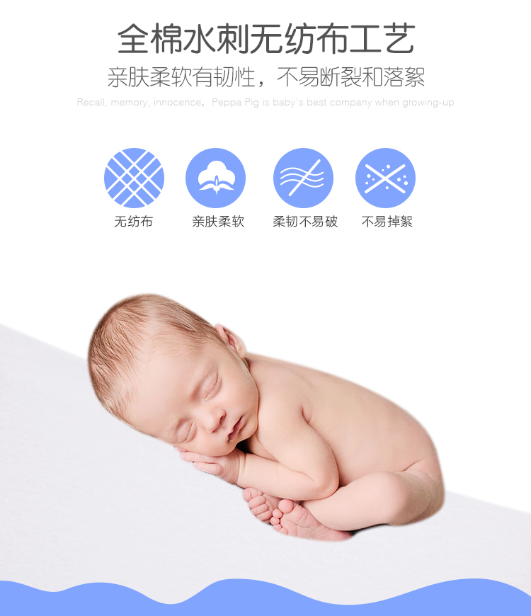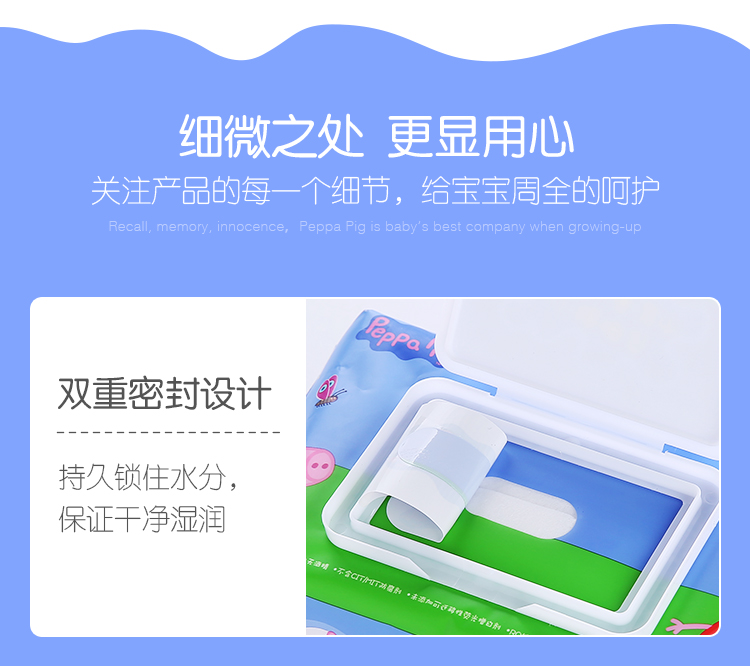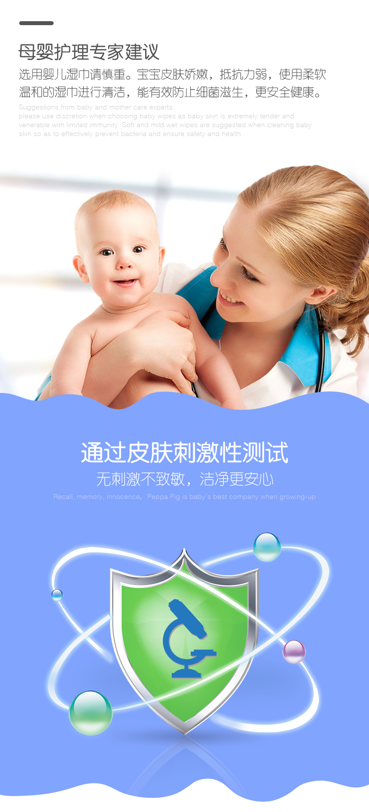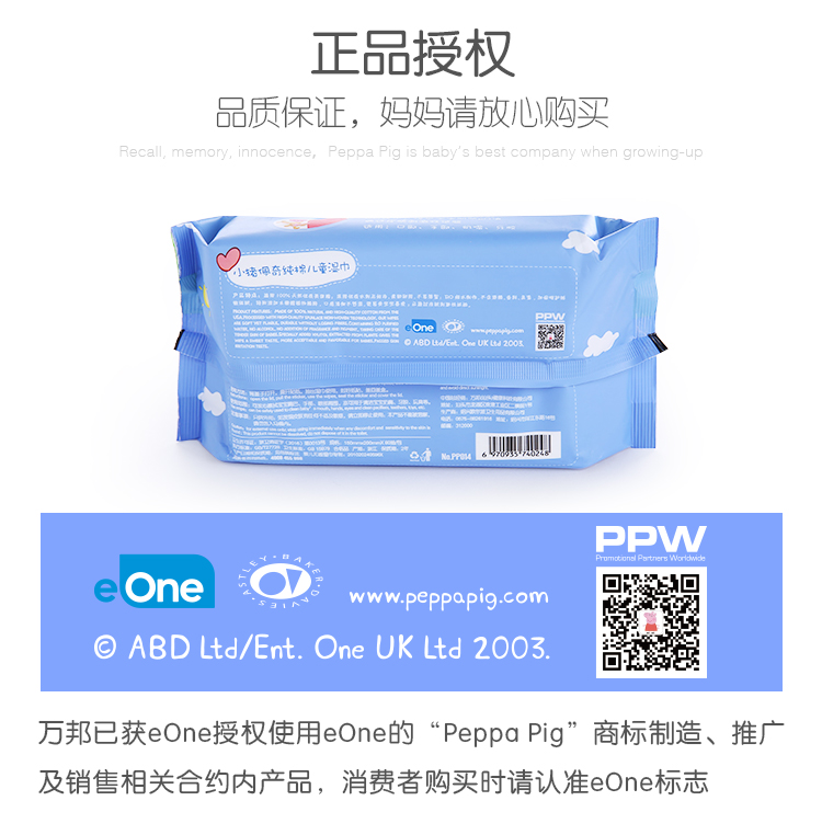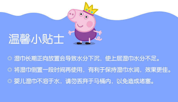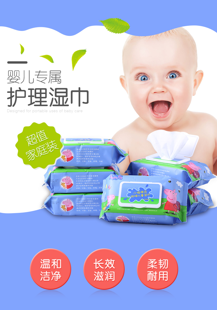 百诺恩小猪佩奇纯棉湿巾婴儿宝宝手口湿巾加厚加大保湿80抽5包装