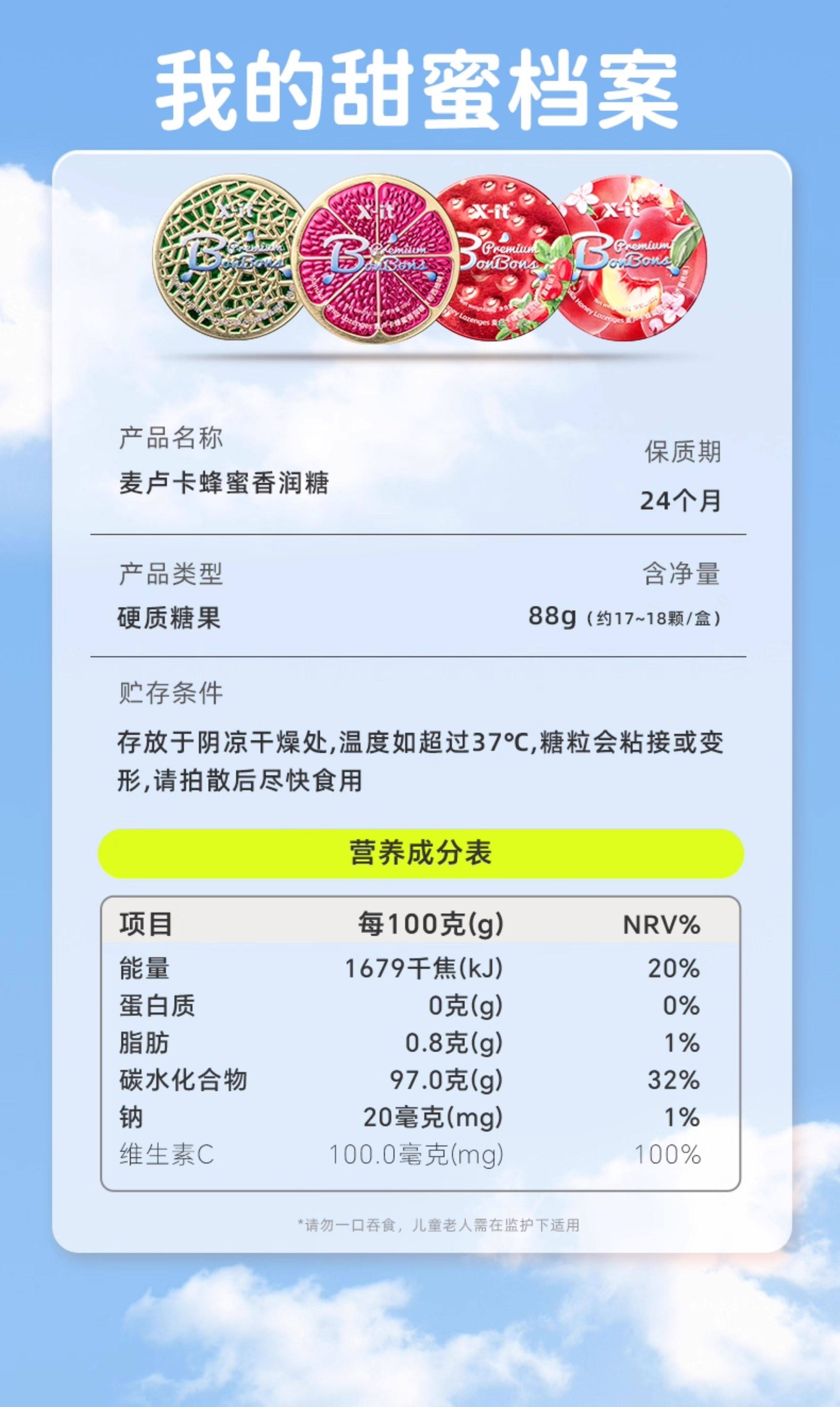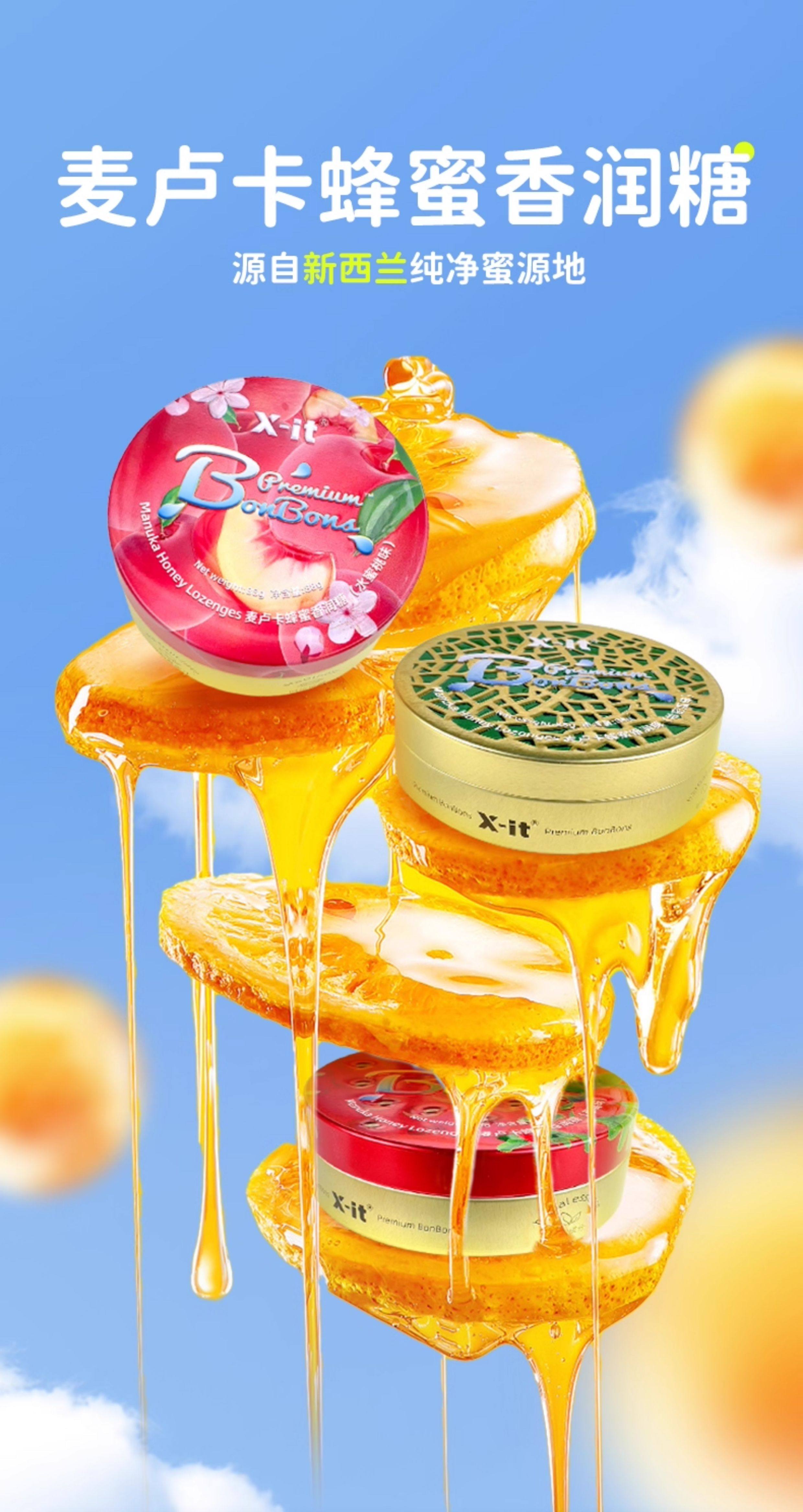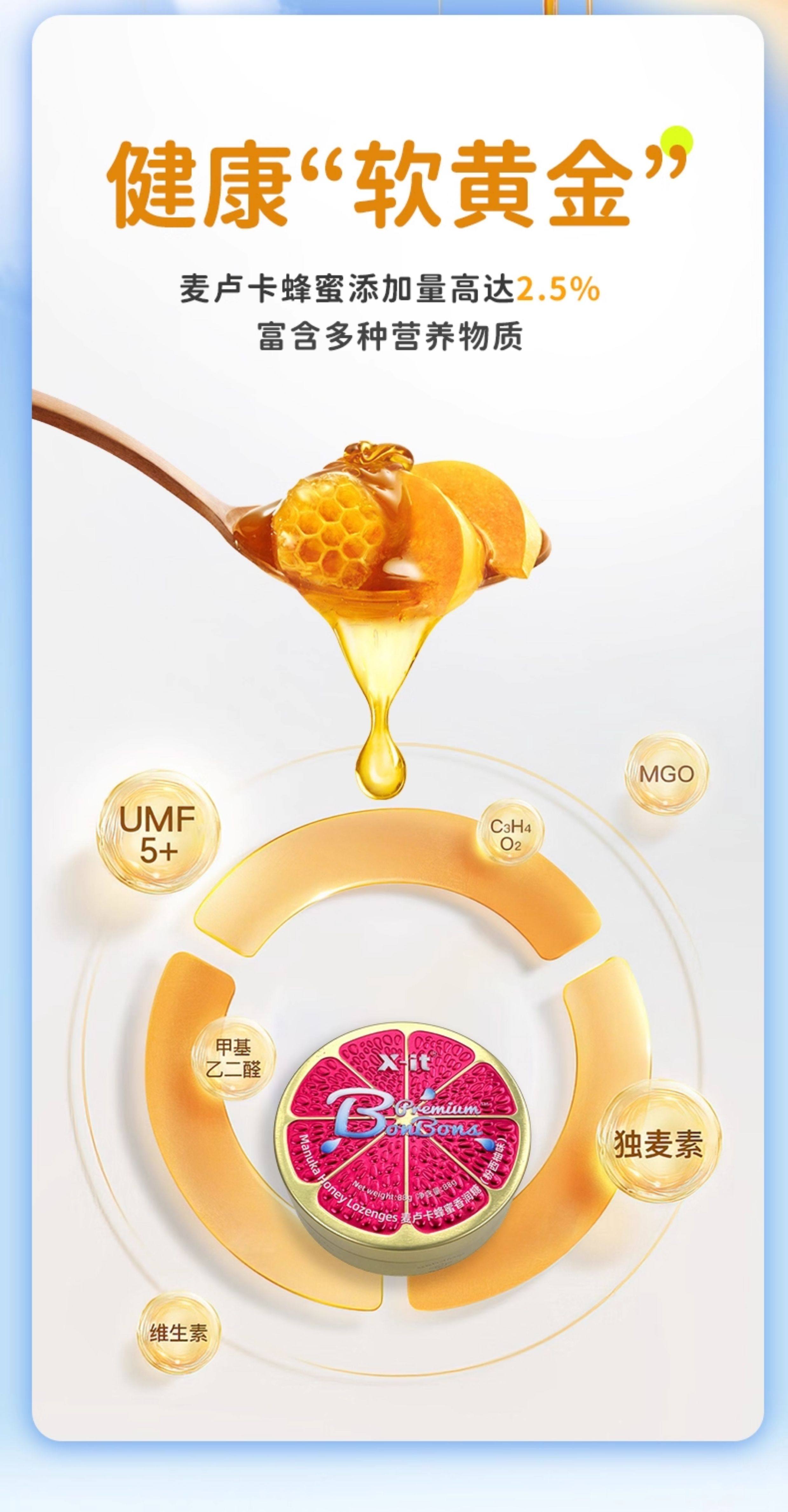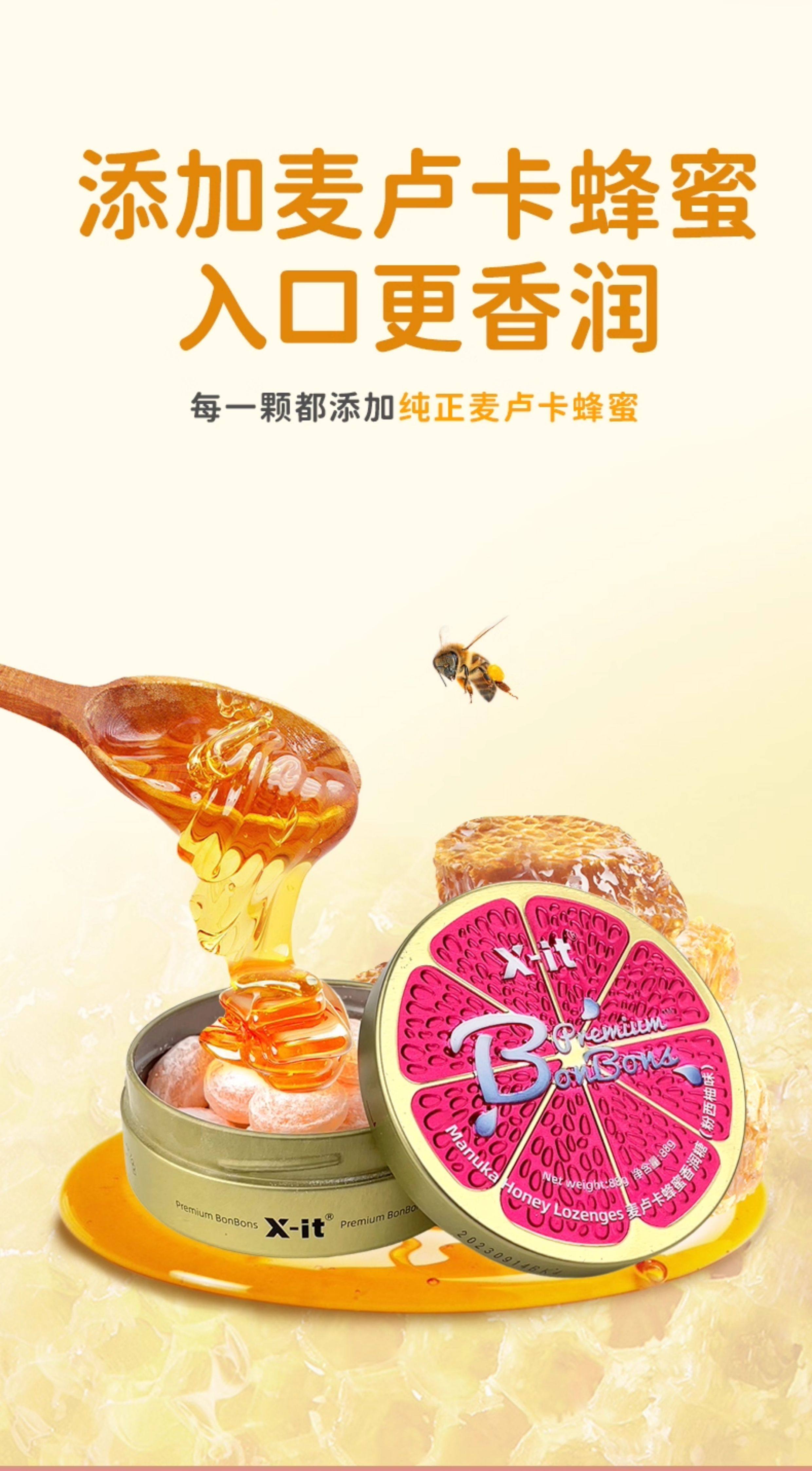 X-it 麦卢卡蜜蜂VC果汁香润糖 天然草本植物精华 清新口气薄荷润喉护嗓 水果糖硬糖