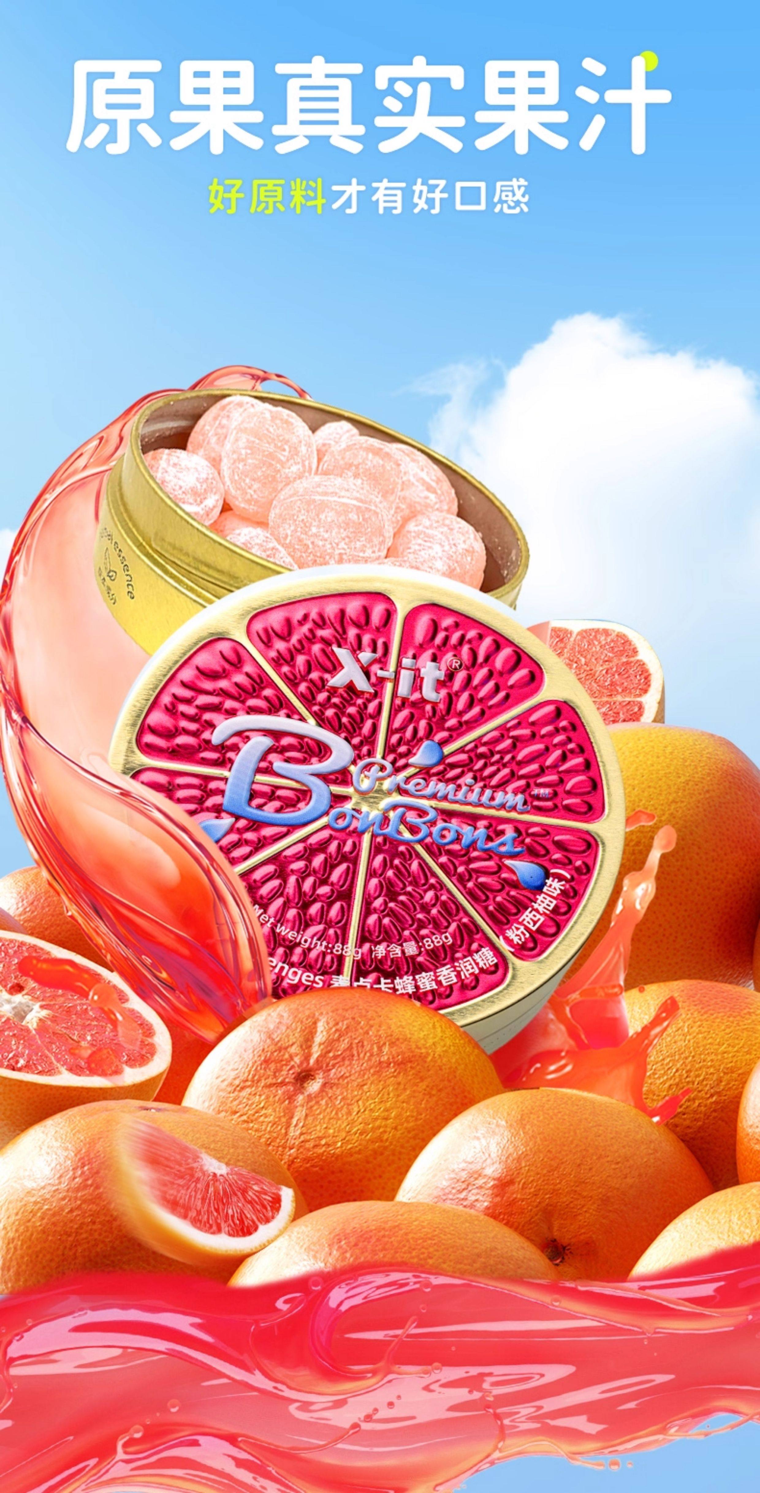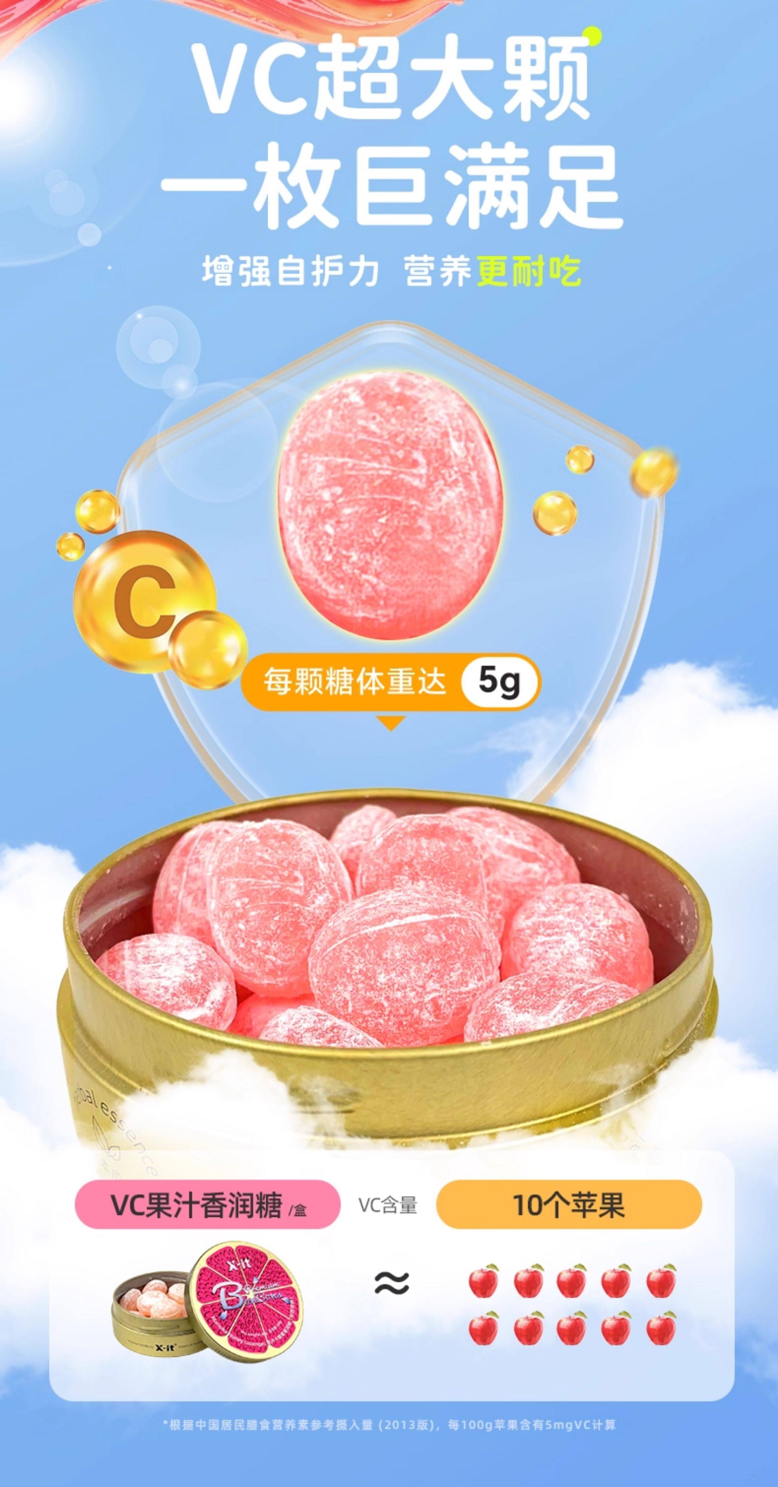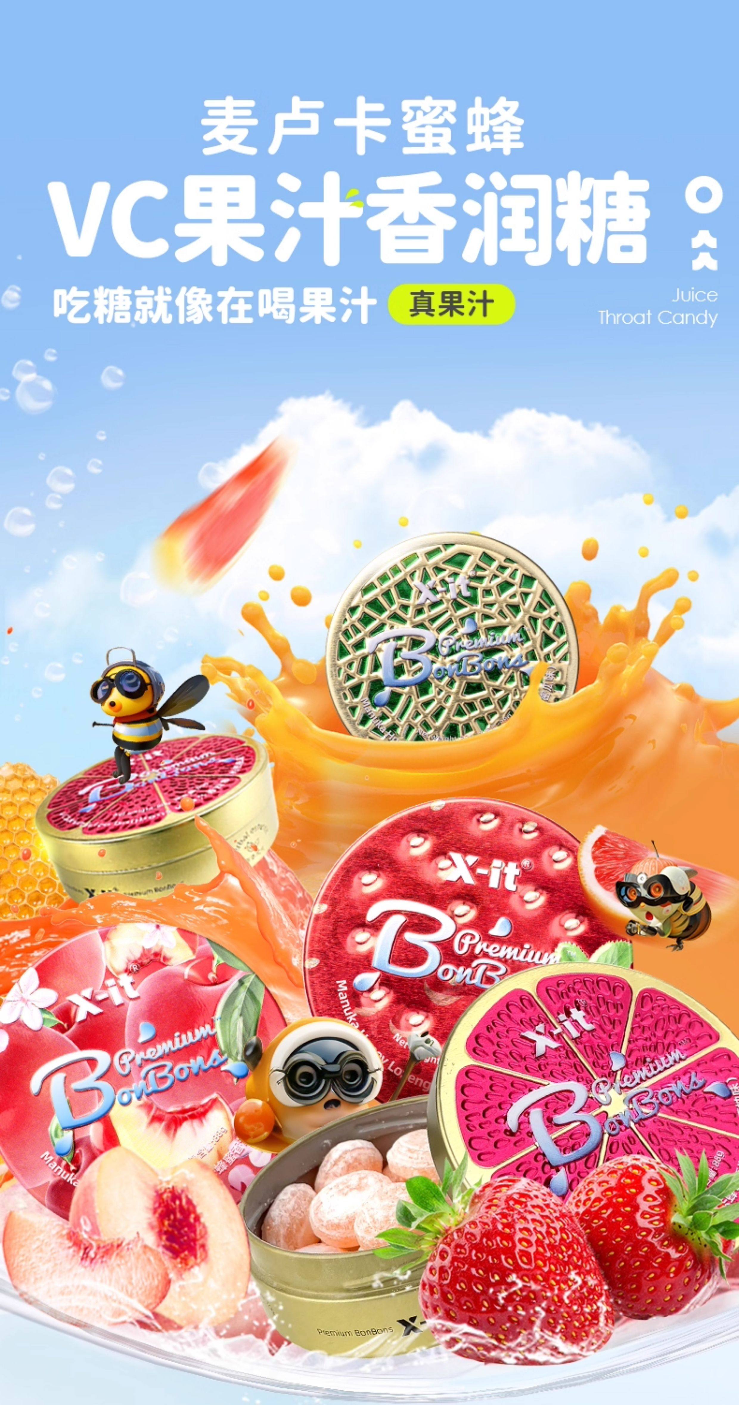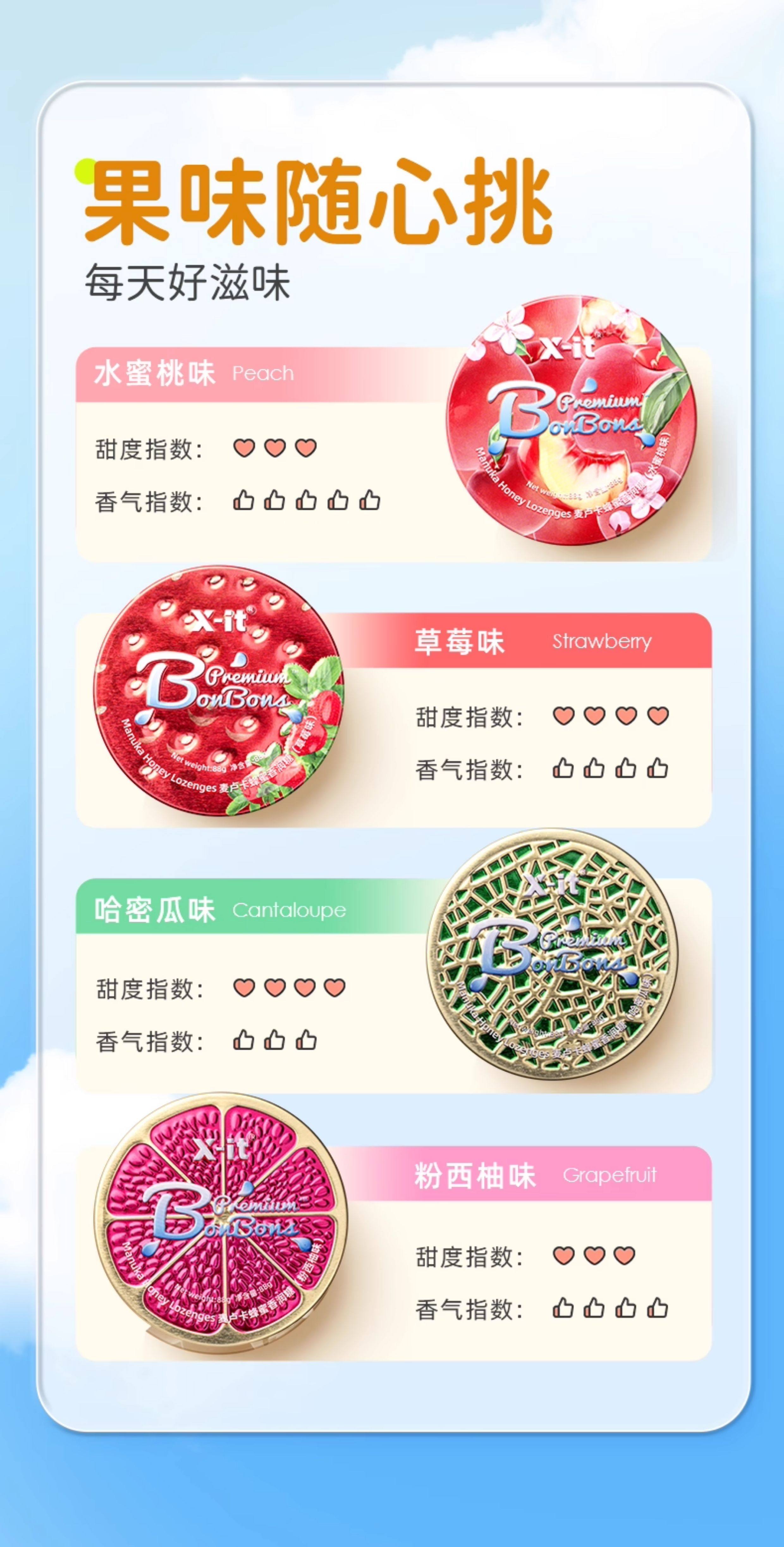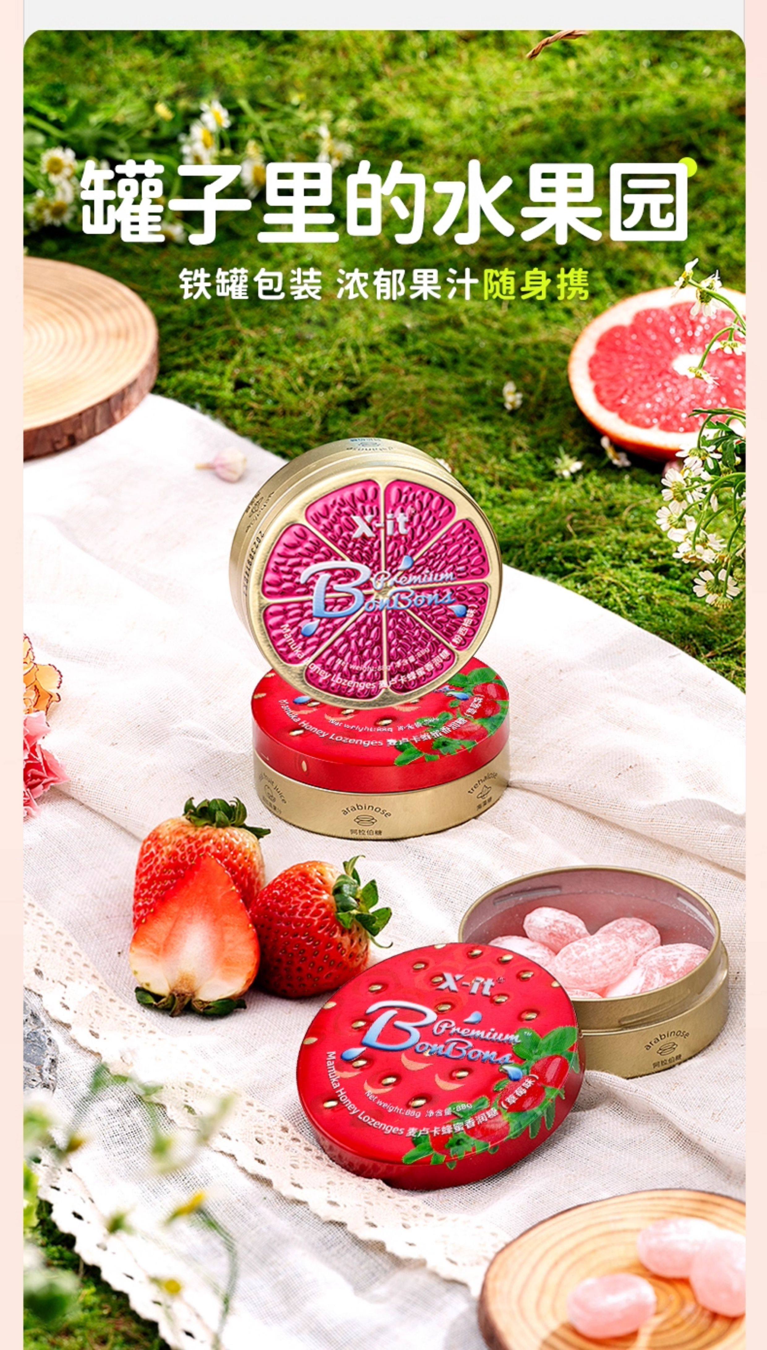 X-it 麦卢卡蜜蜂VC果汁香润糖 天然草本植物精华 清新口气薄荷润喉护嗓 水果糖硬糖