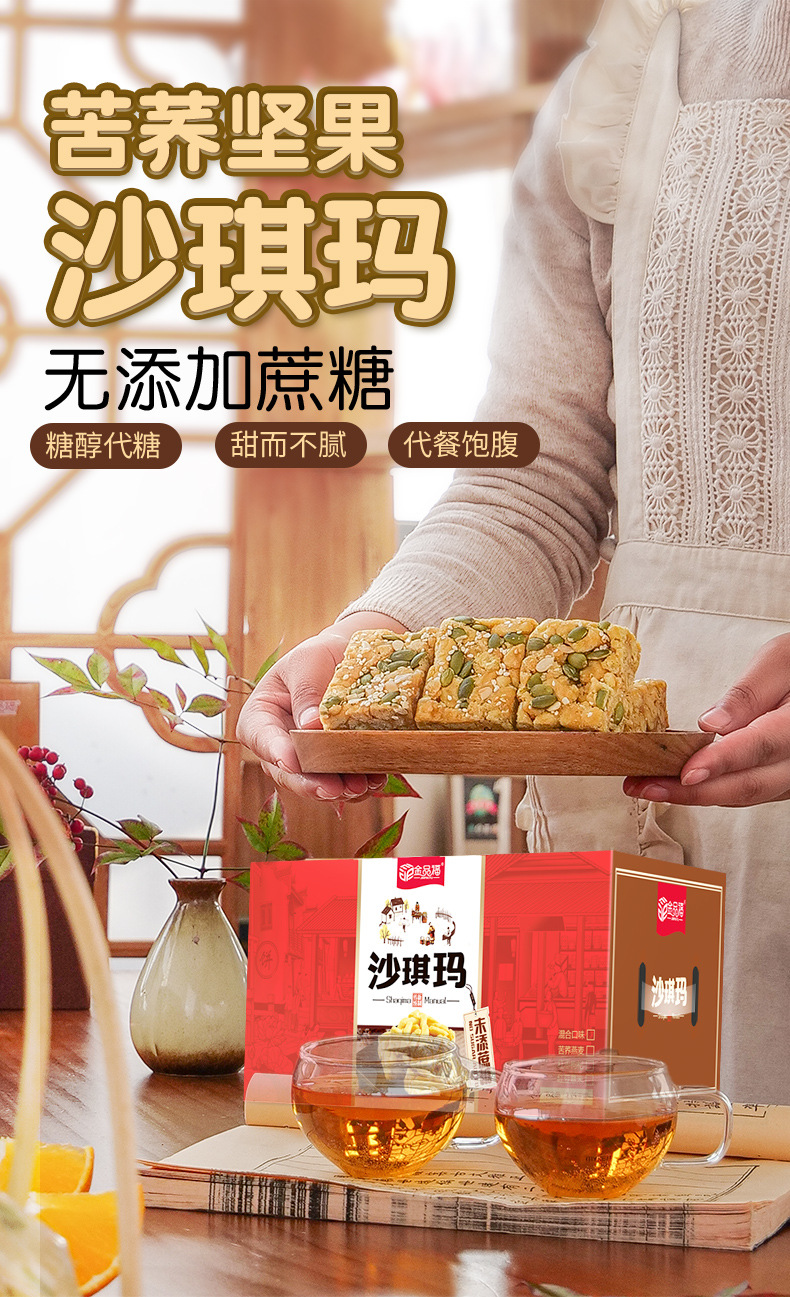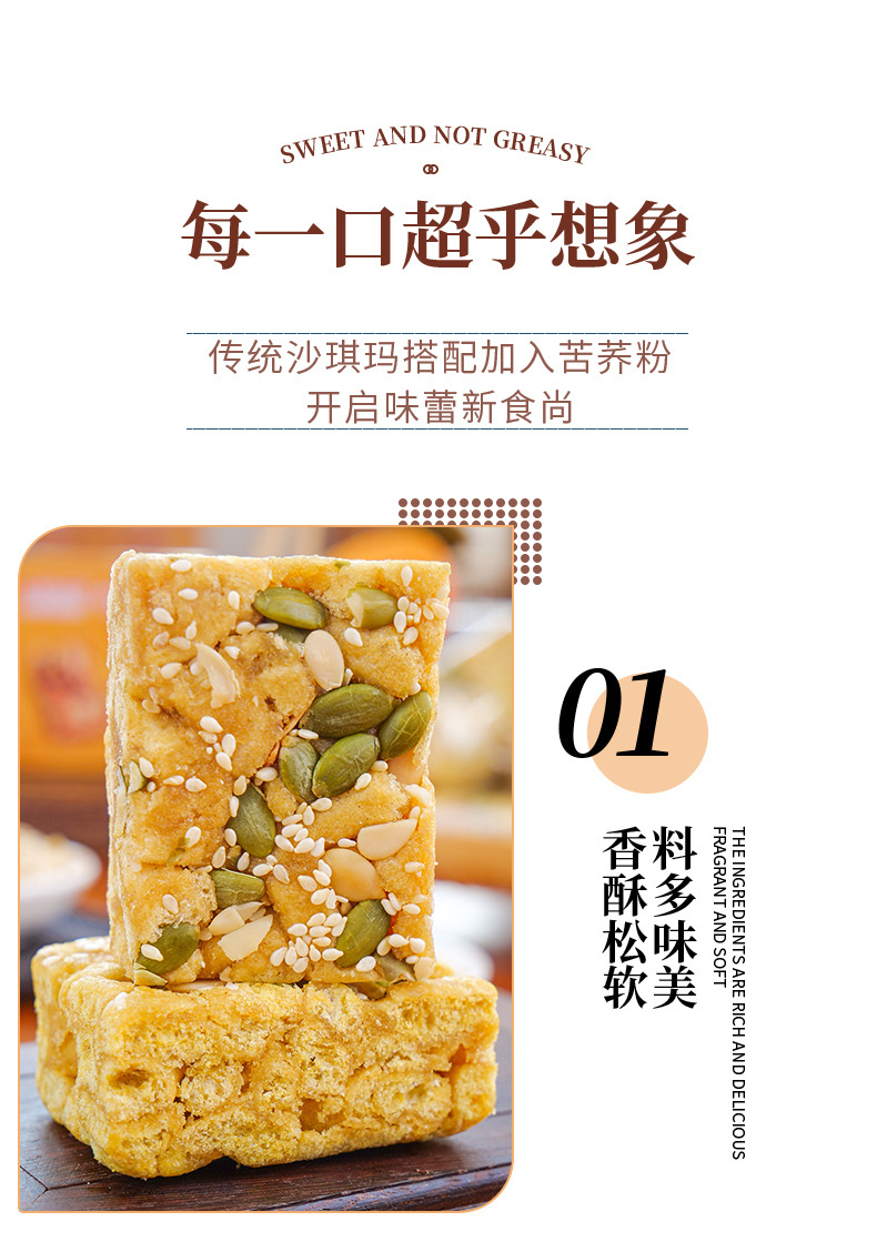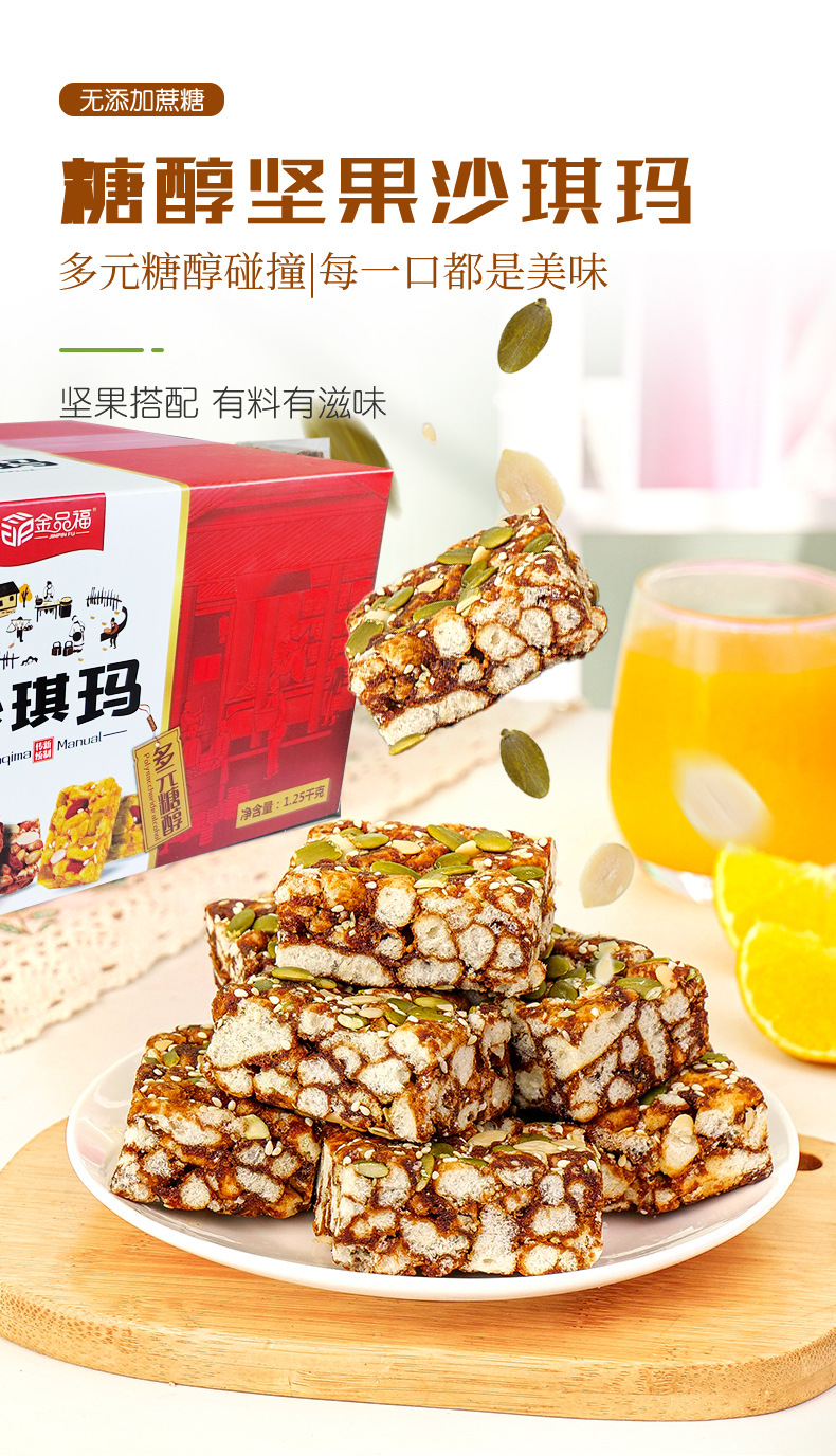 【金品福苦荞坚果沙琪玛 年货礼盒1250克】中老年人 节日送礼 糖人零食