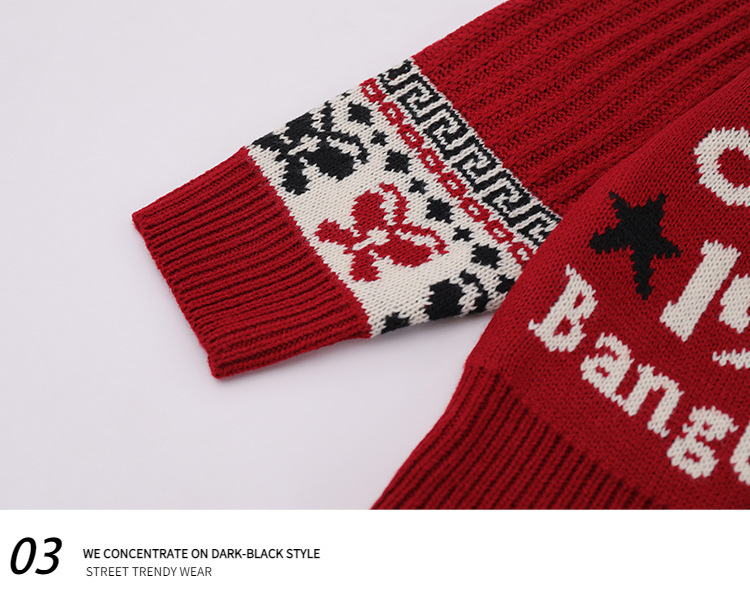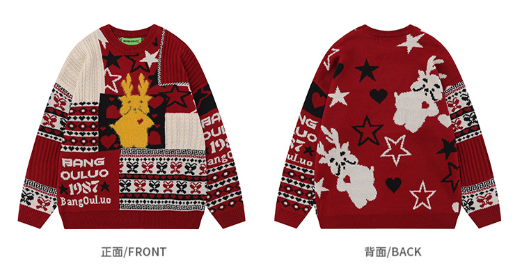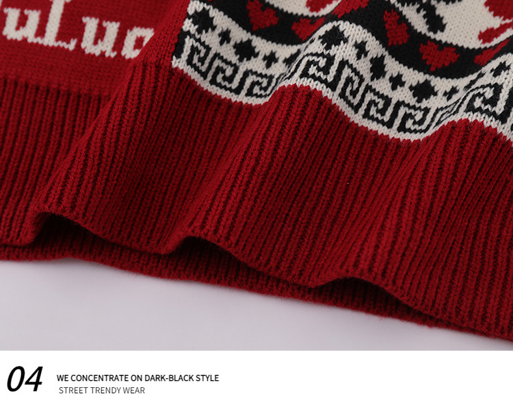美式复古卡通民族风毛衣男女潮牌慵懒风宽松百搭情侣套头针织衫 商品图5