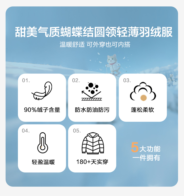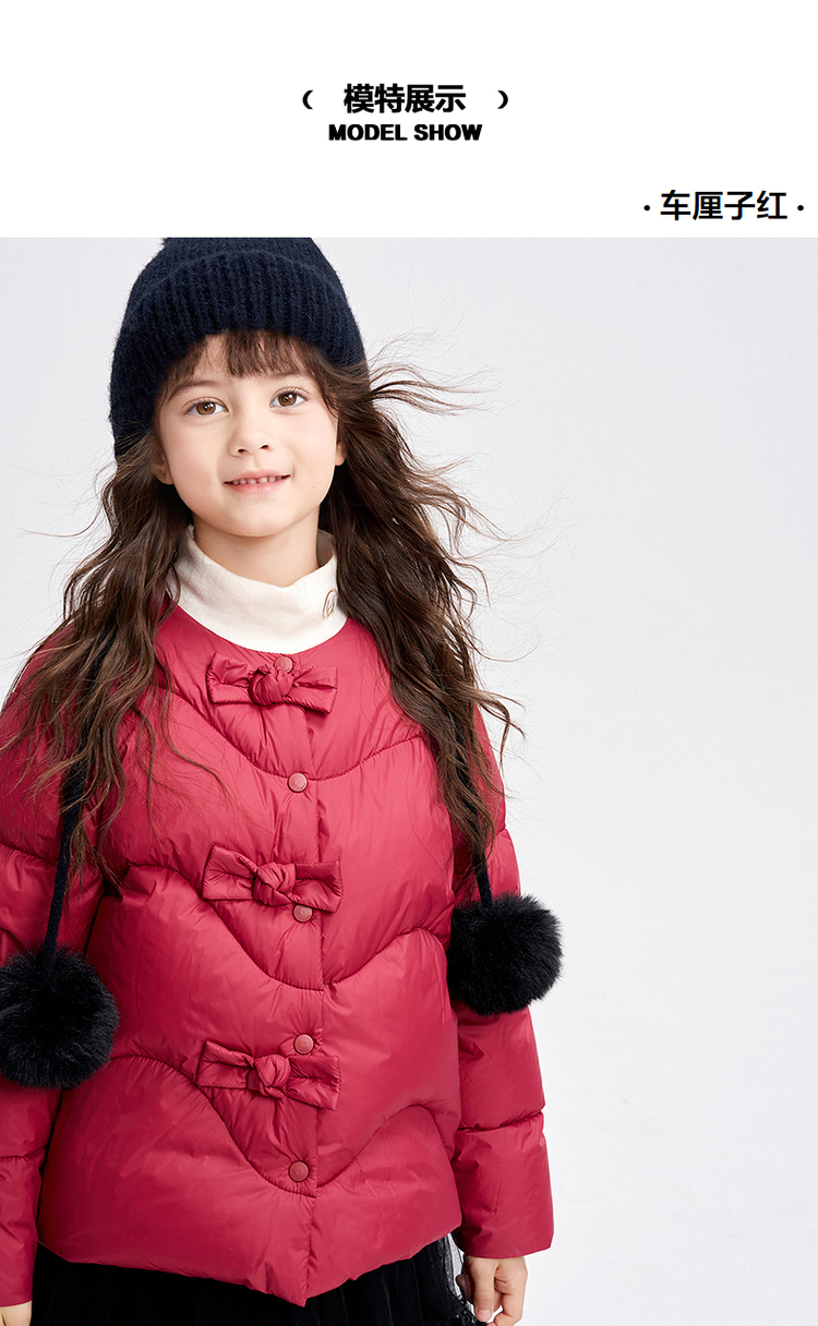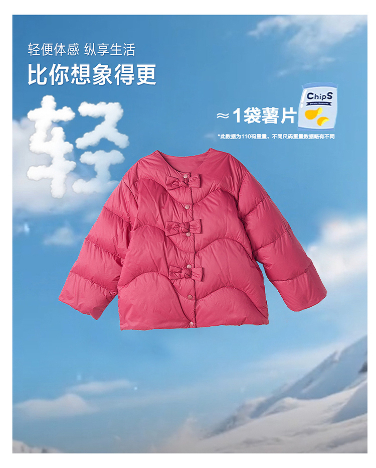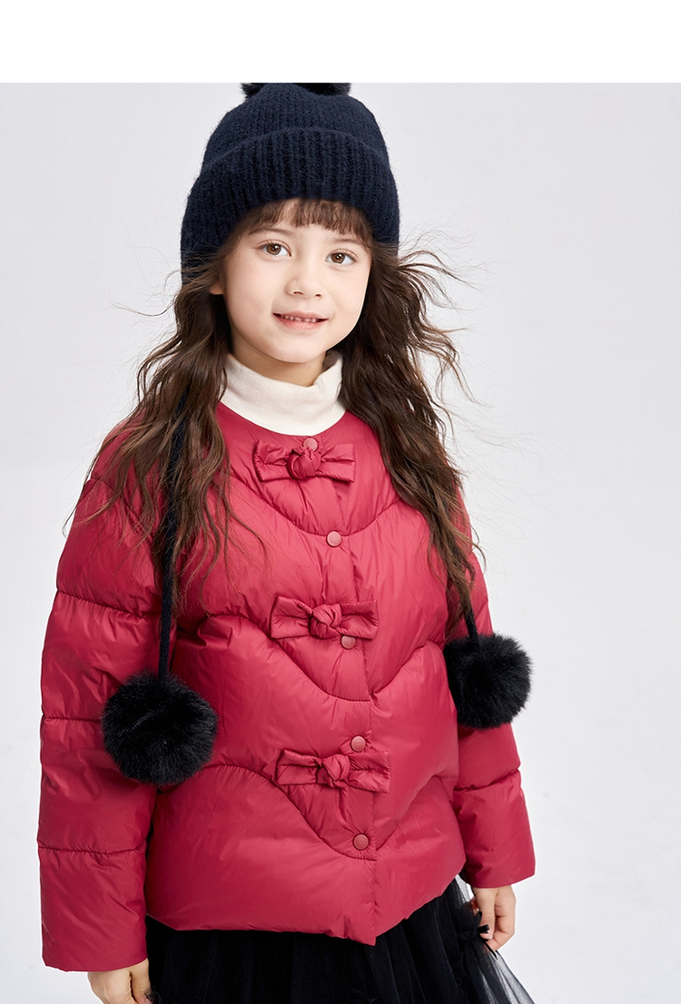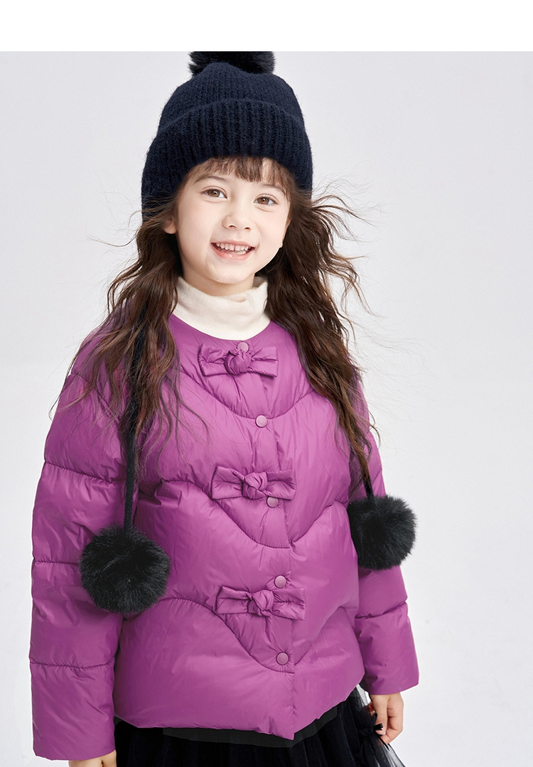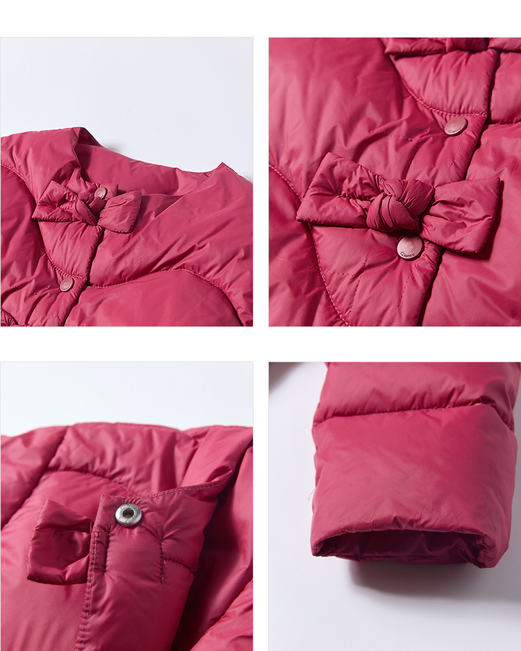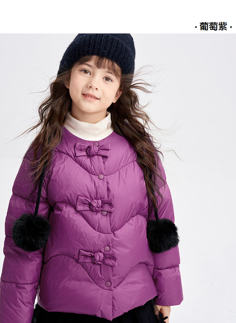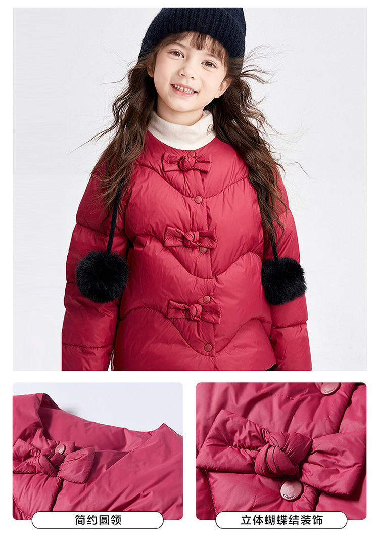 笛莎千与2025冬季新款女童甜美气质蝴蝶结圆领轻薄羽绒服
