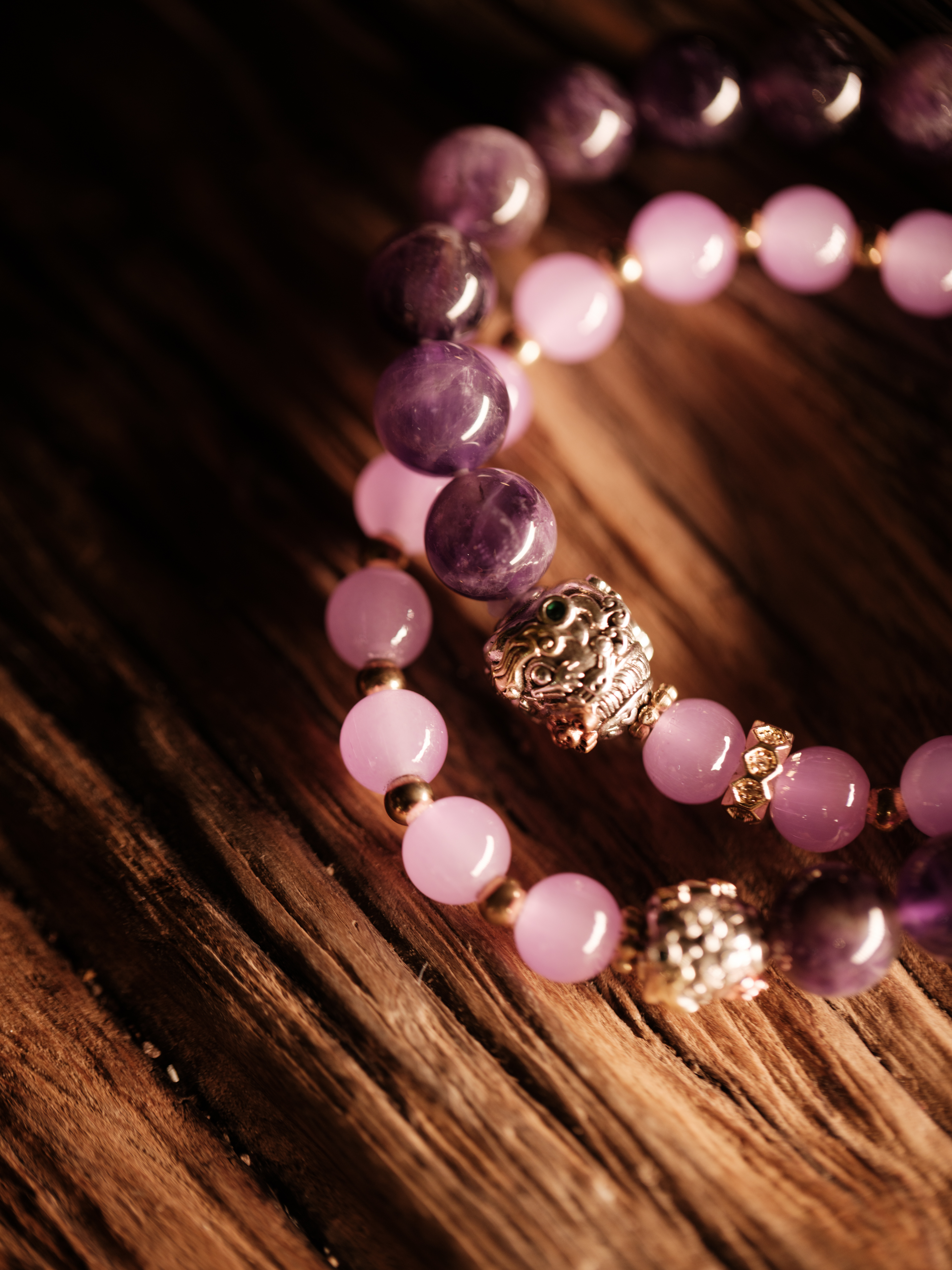 |紫晶小周天配大鹏鸟珠型1.0cm【器悟雅玩】