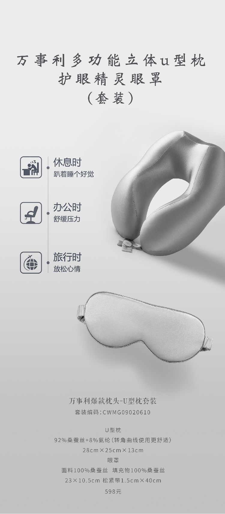 多功能立体U型枕+护眼精灵眼罩套装