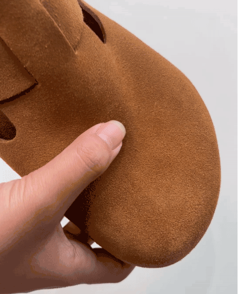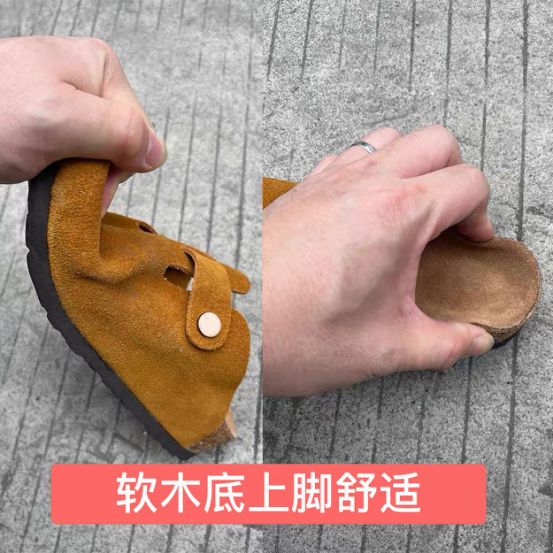 ✅底部采用三段式专业技术复合而成 上层是天然牛反绒 中段采用软木材质+3mm高弹乳胶垫 经过技术加工而成 优点是柔软 穿着一段时间后会贴合脚面 使脚面受力均匀,减少走路累感,久穿不累