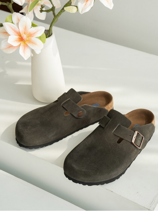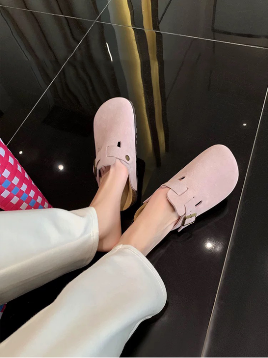 本团全部采用高档牛皮原皮❗️高档牛皮❗️ 和别家几十块的完全不一样! 拿到手质地绝了!! 某宝同款品质售价近千元 百年英国品牌SaCha开团特卖低至💰179元❗️ 给大家带来9个款式!(包跟、半拖、拖鞋) 全部是高档牛皮制作 ✅鞋型挺阔,但鞋身很柔软 轻盈耐磨,还防滑 ✅鞋底设计严格按照人体工程学设计 贴足弓、回弹好、减震又有缓冲性 ✅脚感舒适、轻便 鞋面的扣子也是可调节的,告别闷热