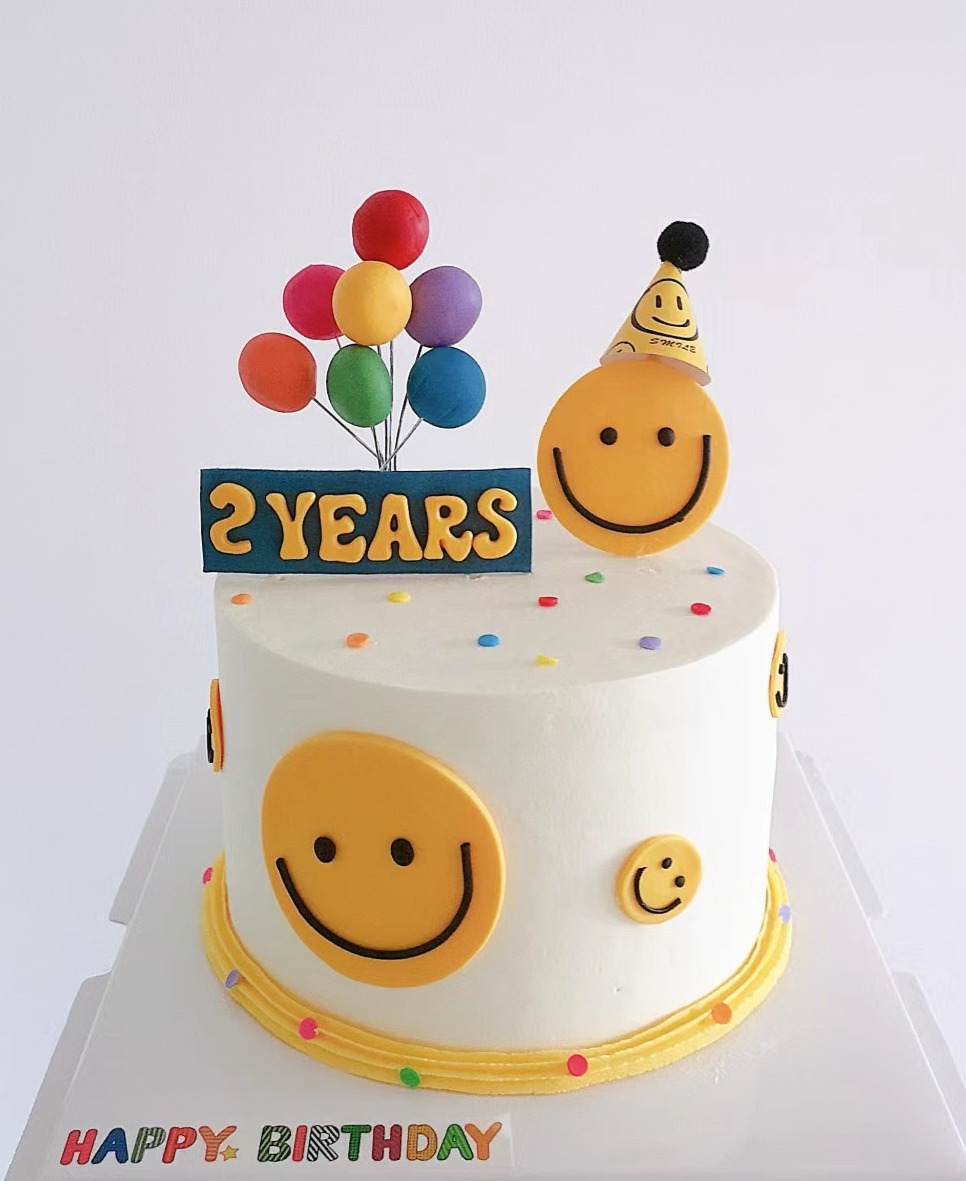 【臻品系列】---半翻糖加高胚三层夹心【立体笑脸】蛋糕