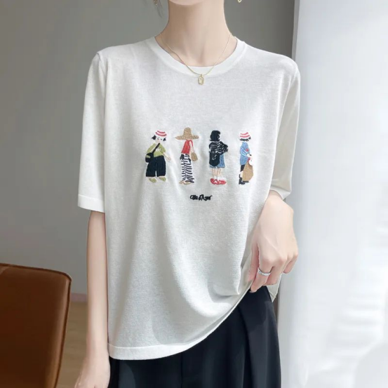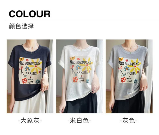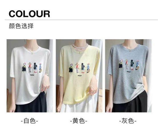 恤是常规的圆领,随意穿脱都不会蹭到口红和妆容。