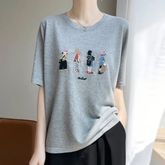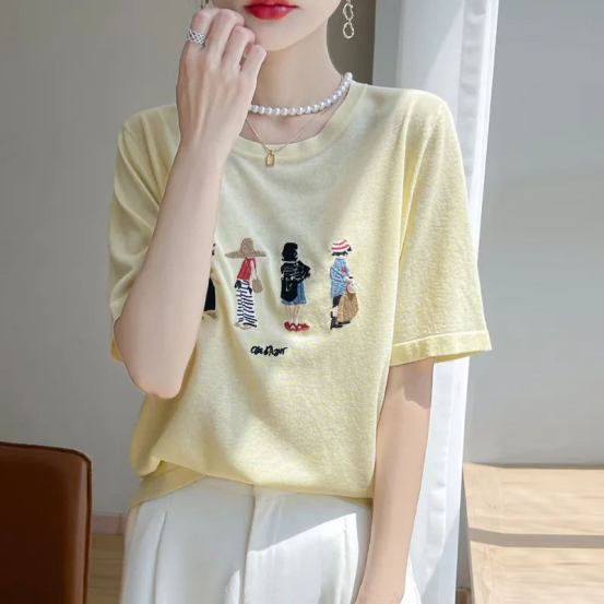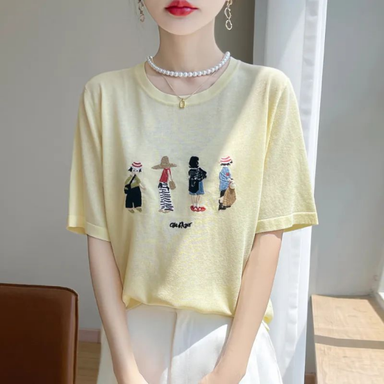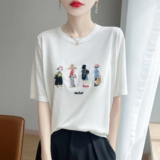 🤩【Avann 夏日清凉超软亚麻混纺刺绣短袖款】💥上身优雅知性,百搭必备款多色可选,耐看不过时 面料采用粘纤+聚酯+亚麻😎,触感柔软,舒适亲肤