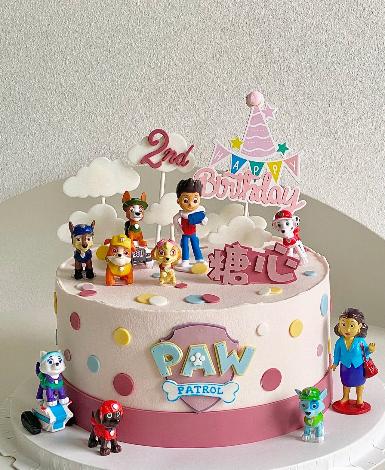 【臻品系列】---半翻糖加高【粉色汪汪队】送女孩、周岁生日蛋糕