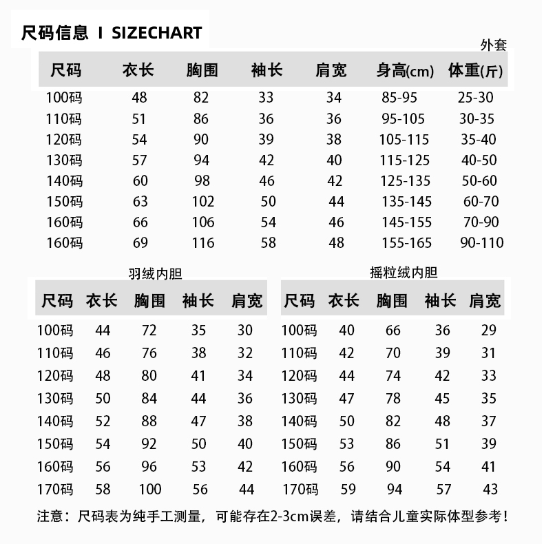 儿童羽绒服三件