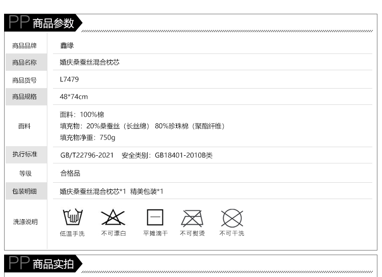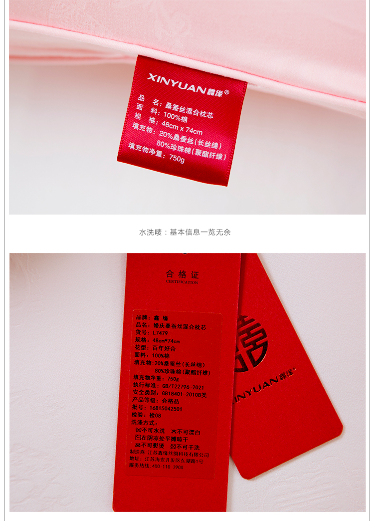 鑫缘 婚庆桑蚕丝混合枕芯 L7479 一只装