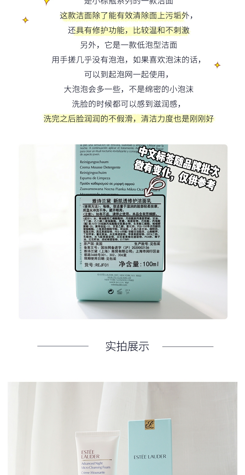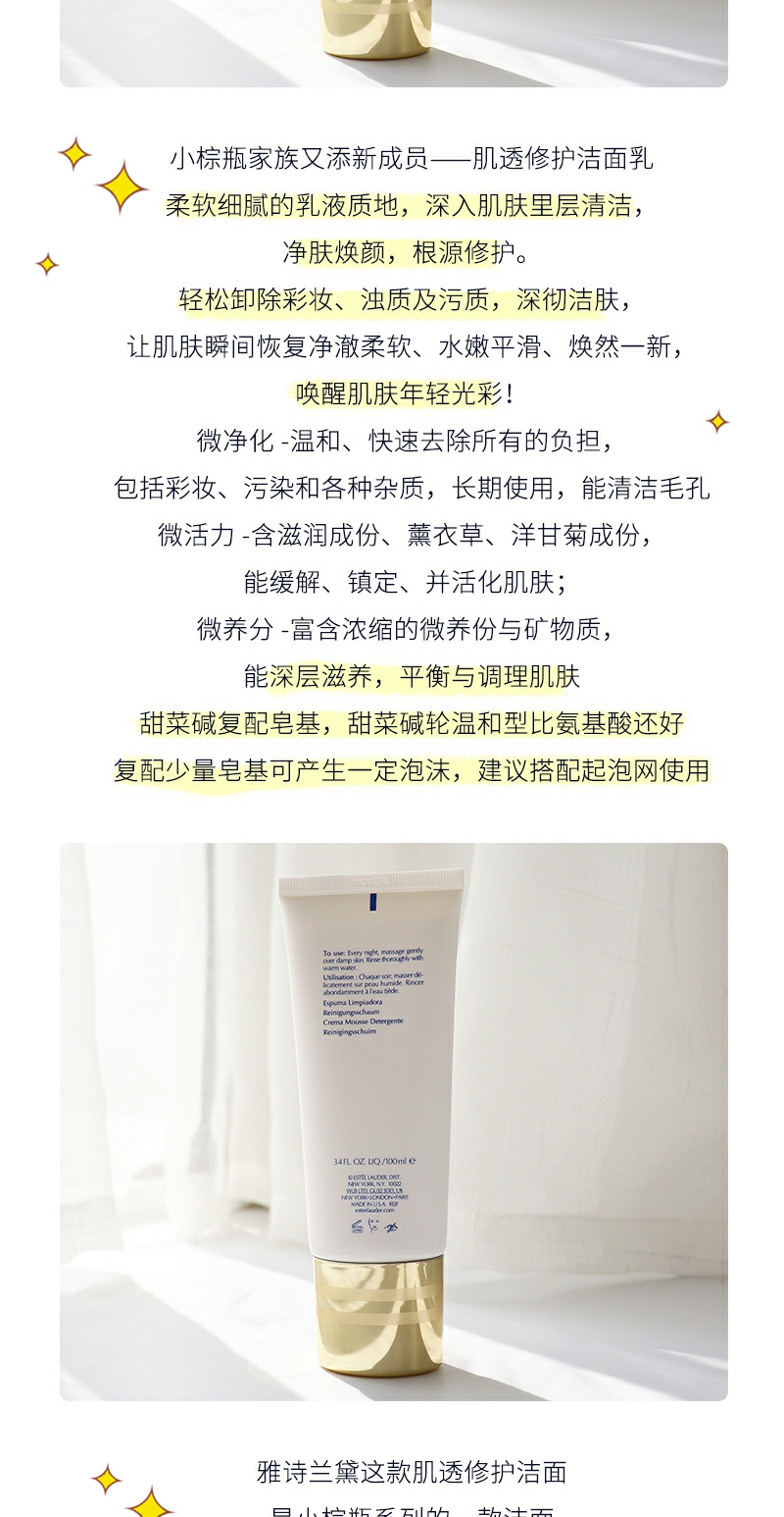 【YZ】雅诗兰黛anr洗面奶 肌透修护洁面乳100ml 小棕瓶卸妆乳