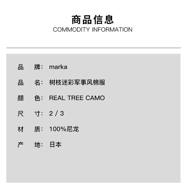marka RINNING SNOW PARKA 树枝迷彩军事风连帽棉服 含独立内胆