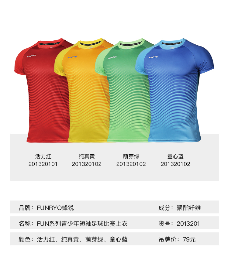 FUNRYO/蜂锐FUN系列青少年训练比赛球衣足球服