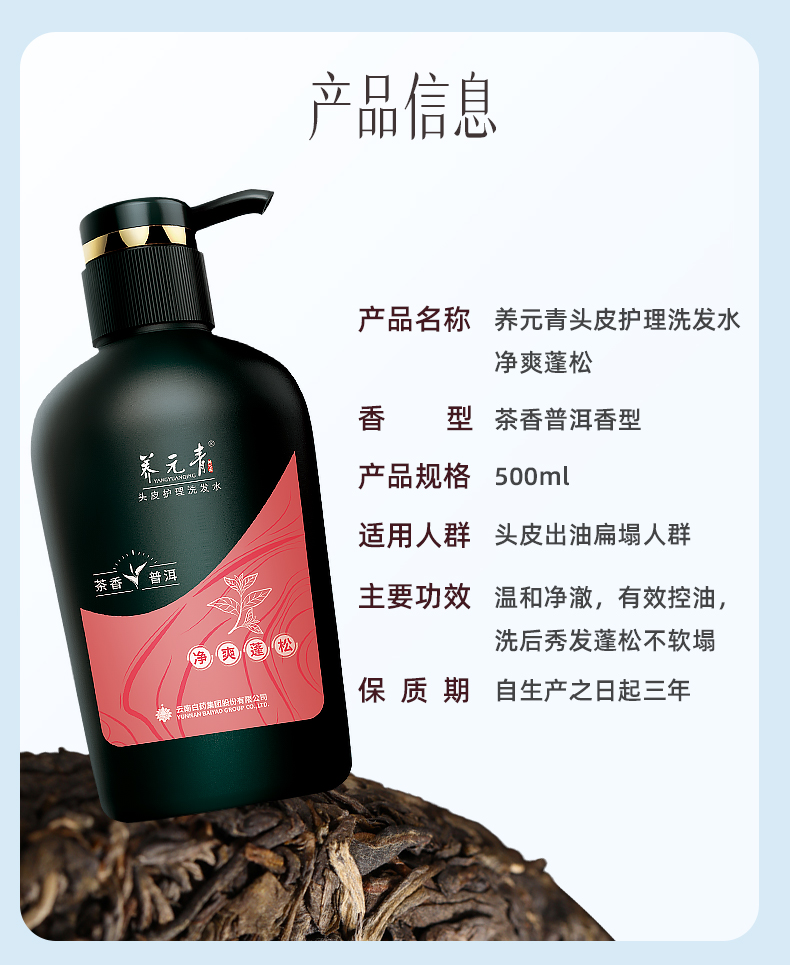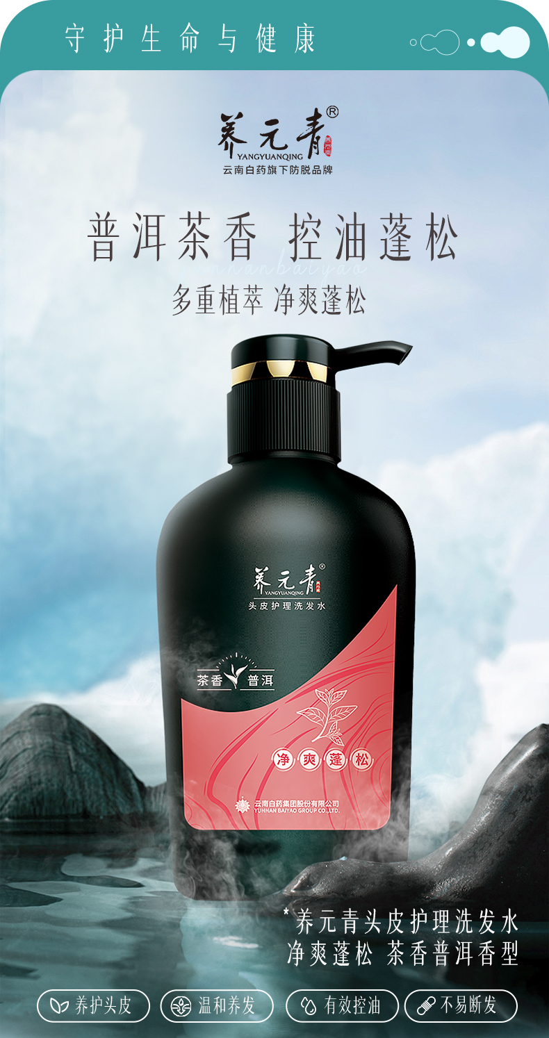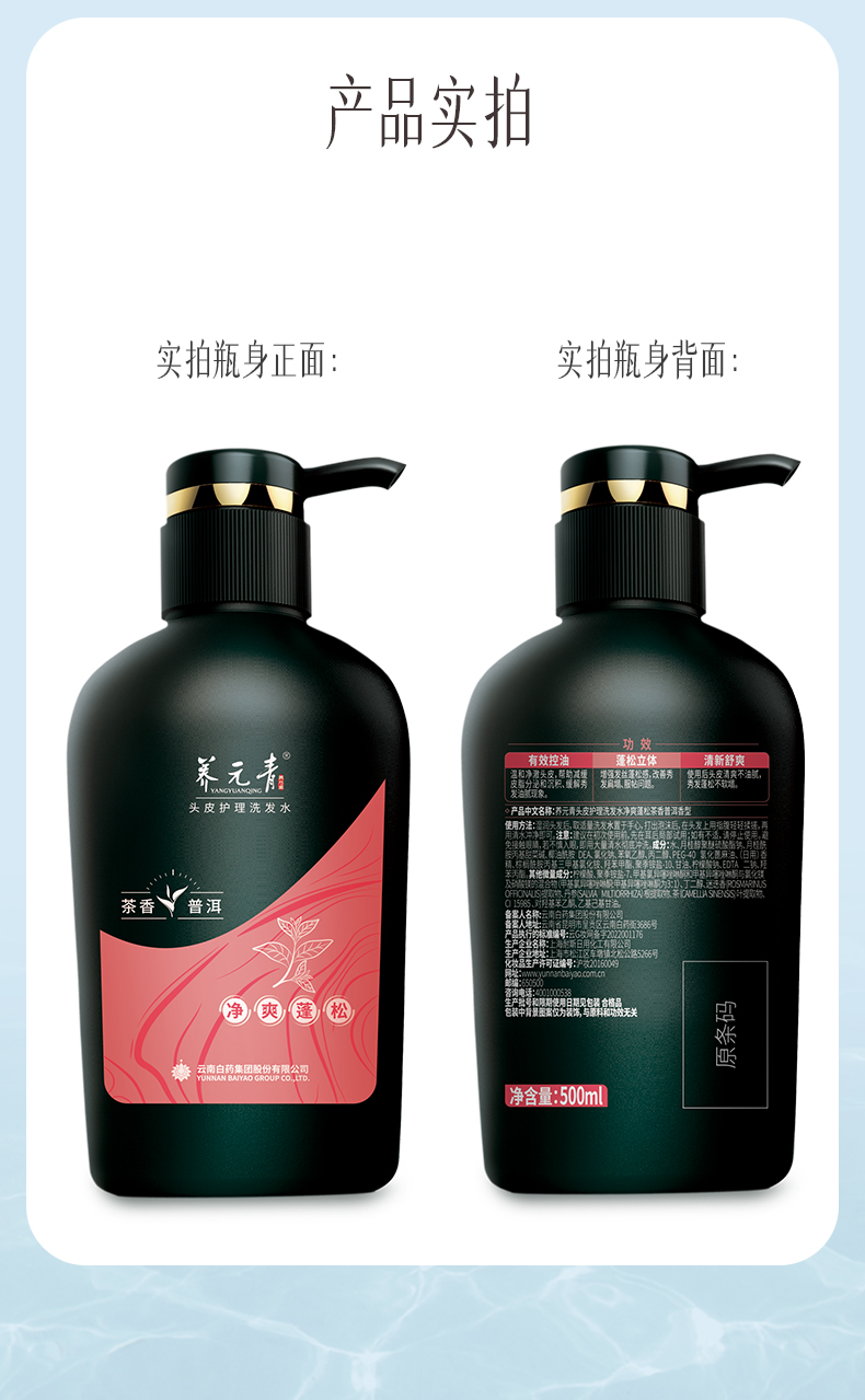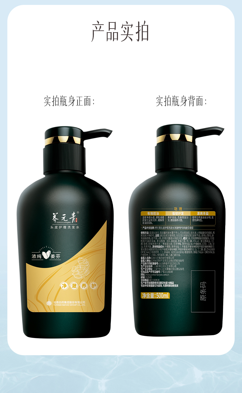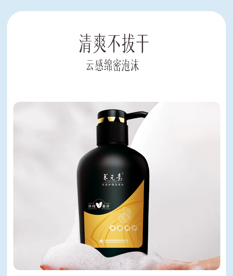 【官方正品】云南白药养元青生姜洗发露强根健发500ml普洱蓬松洗发水大瓶装植萃洗发水大瓶装无硅油