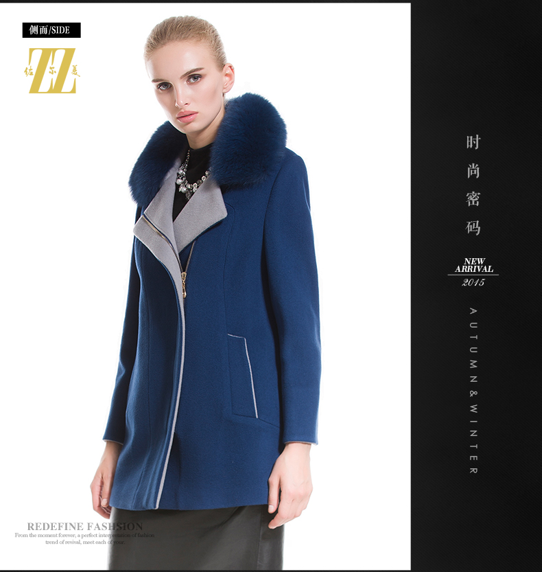 佐尔美冬款新品羊毛大衣女中长款毛领毛呢外套E44ZH68
